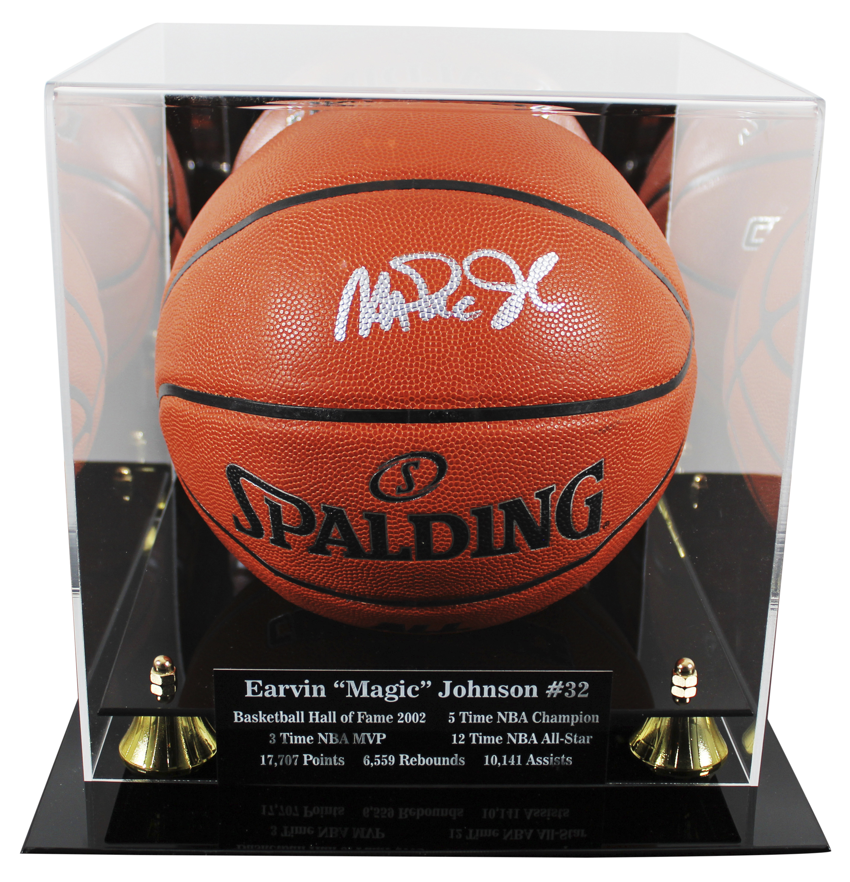 Spalding Authentic Series Indoor/Outdoor NBA basketball. Hand-signed by Magic Johnson (Los Angeles Lakers, HOF). The display case is included as shown.