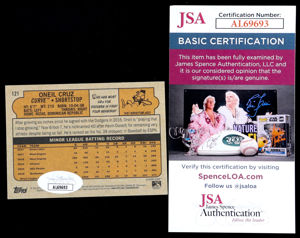 Oneil Cruz Signed 2021 Topps Heritage Minors #121 RC (JSA)