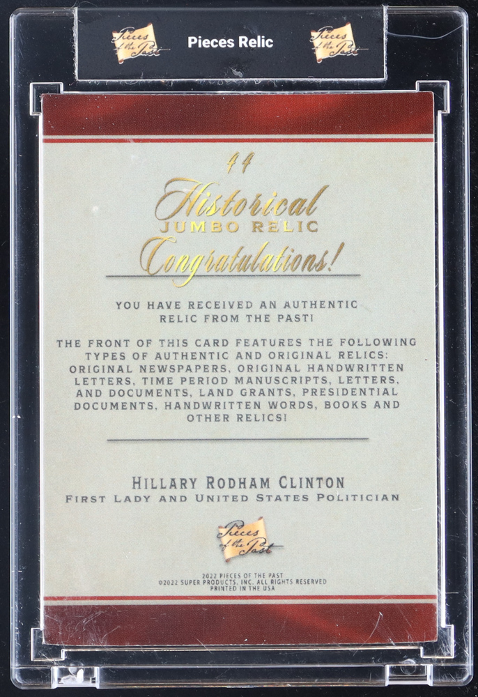 Hillary Rodham Clinton 2022 Pieces of the Past Historical Jumbo Relic Cracked Ice #44