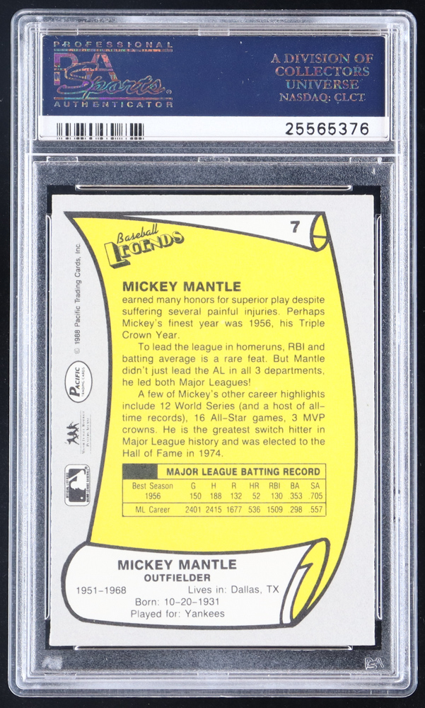 Mickey Mantle Signed 1988 Pacific Legends I #7 (PSA)