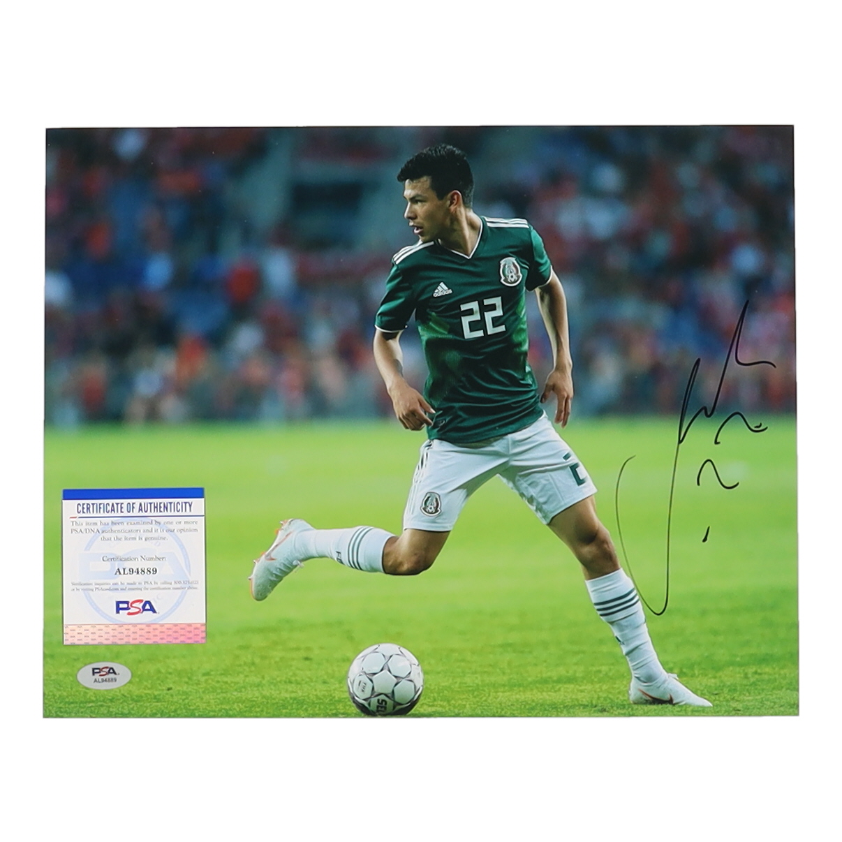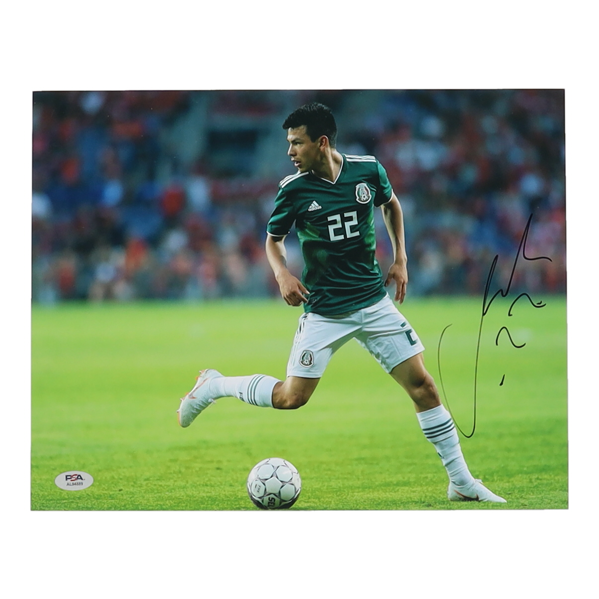 Photo measures 11" x 14" in size and has been hand-signed by Hirving Lozano.