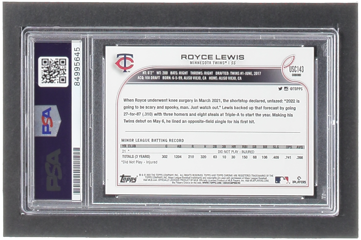 Royce Lewis Signed 2022 Topps Chrome Update Purple Refractors #USC143 RC (PSA)