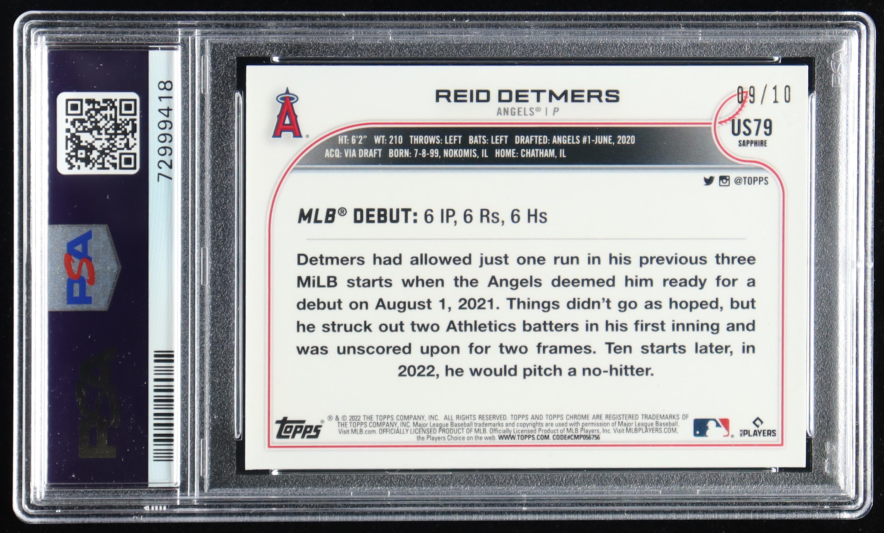 Reid Detmers 2022 Topps Chrome Update Sapphire Purple Refractors #US79 RC #09/10 (PSA 9)