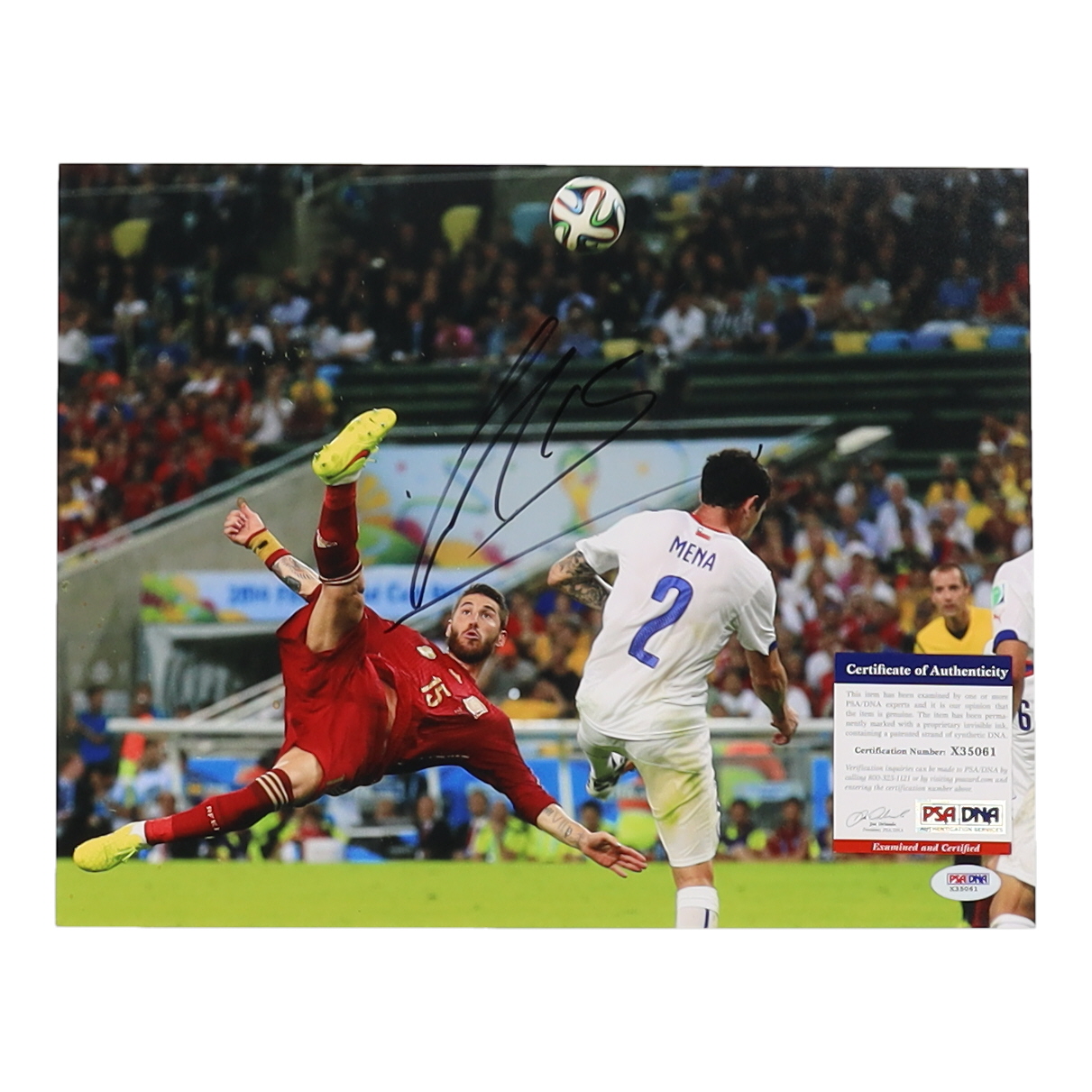 Photo measures 11" x 14" in size and has been hand-signed by Sergio Ramos.