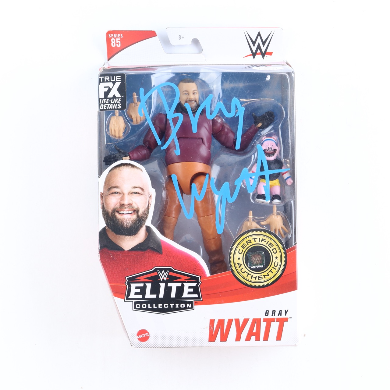 Action figure measures approximately 9" tall. Hand-signed on the packaging by Bray Wyatt.