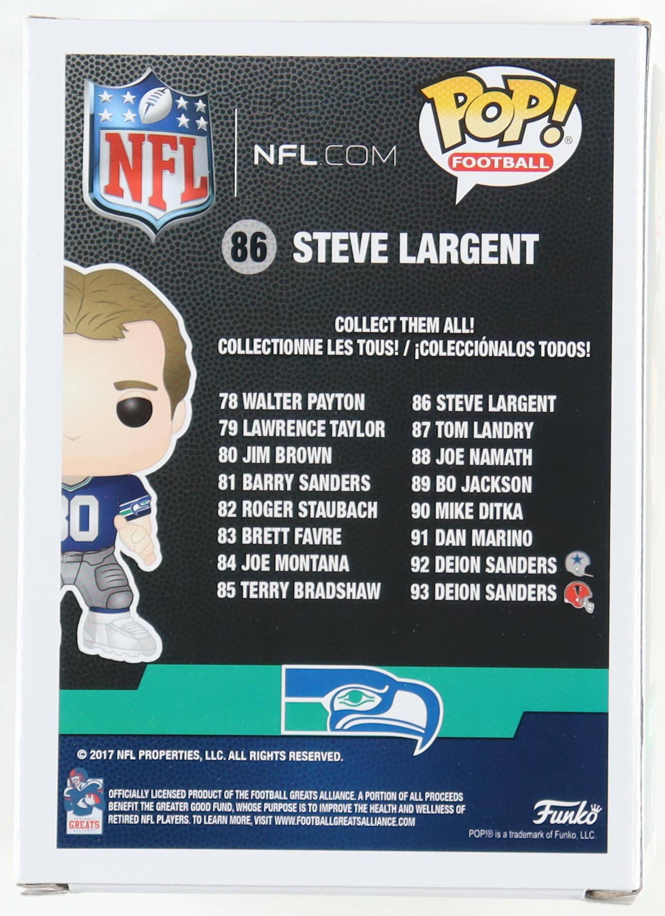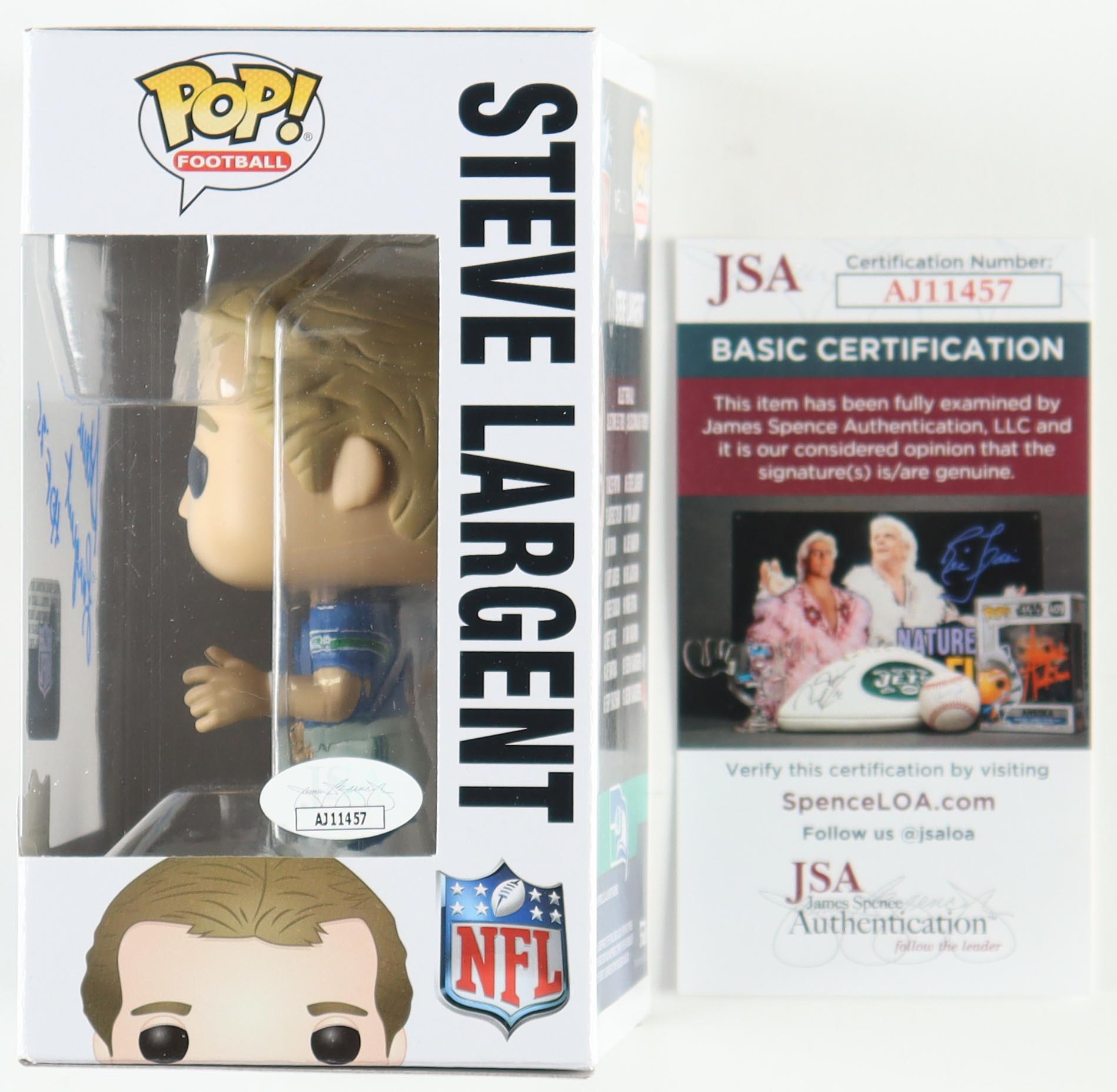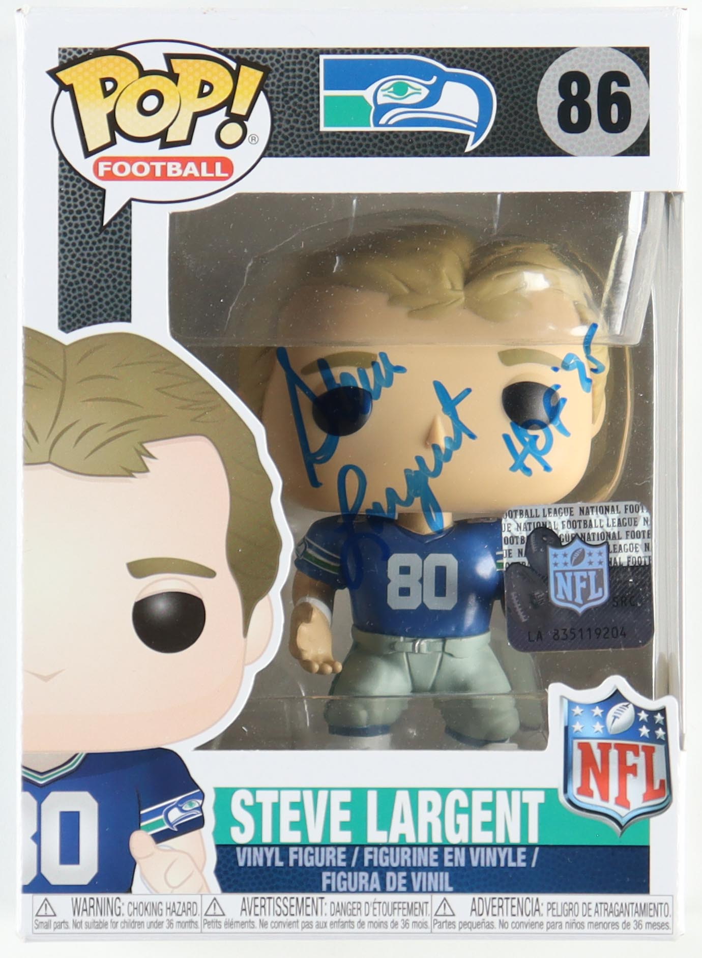 Funko Pop! figure measures approximately 4" tall and has been hand-signed and inscribed on the packaging by Steve Largent (Seattle Seahawks, HOF).