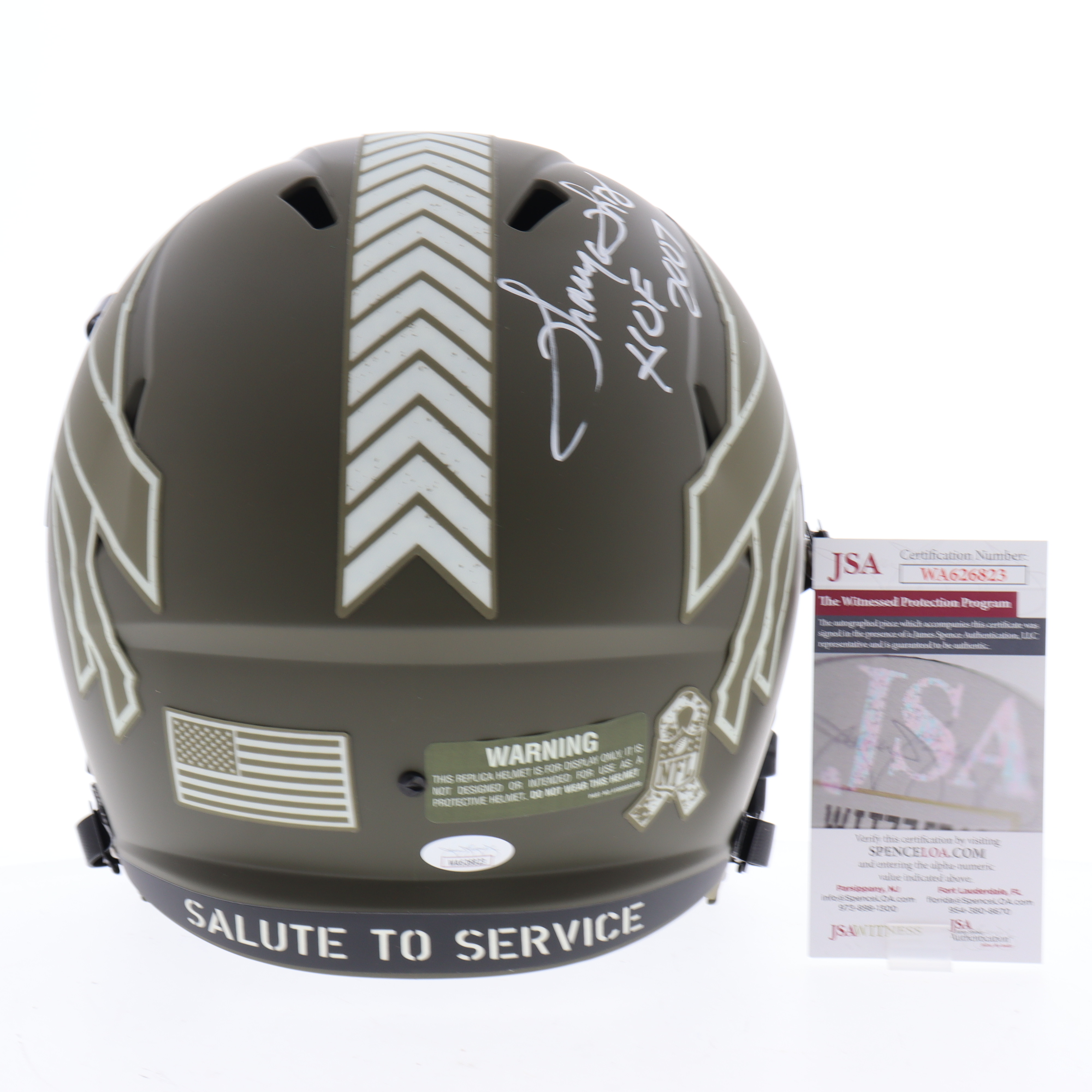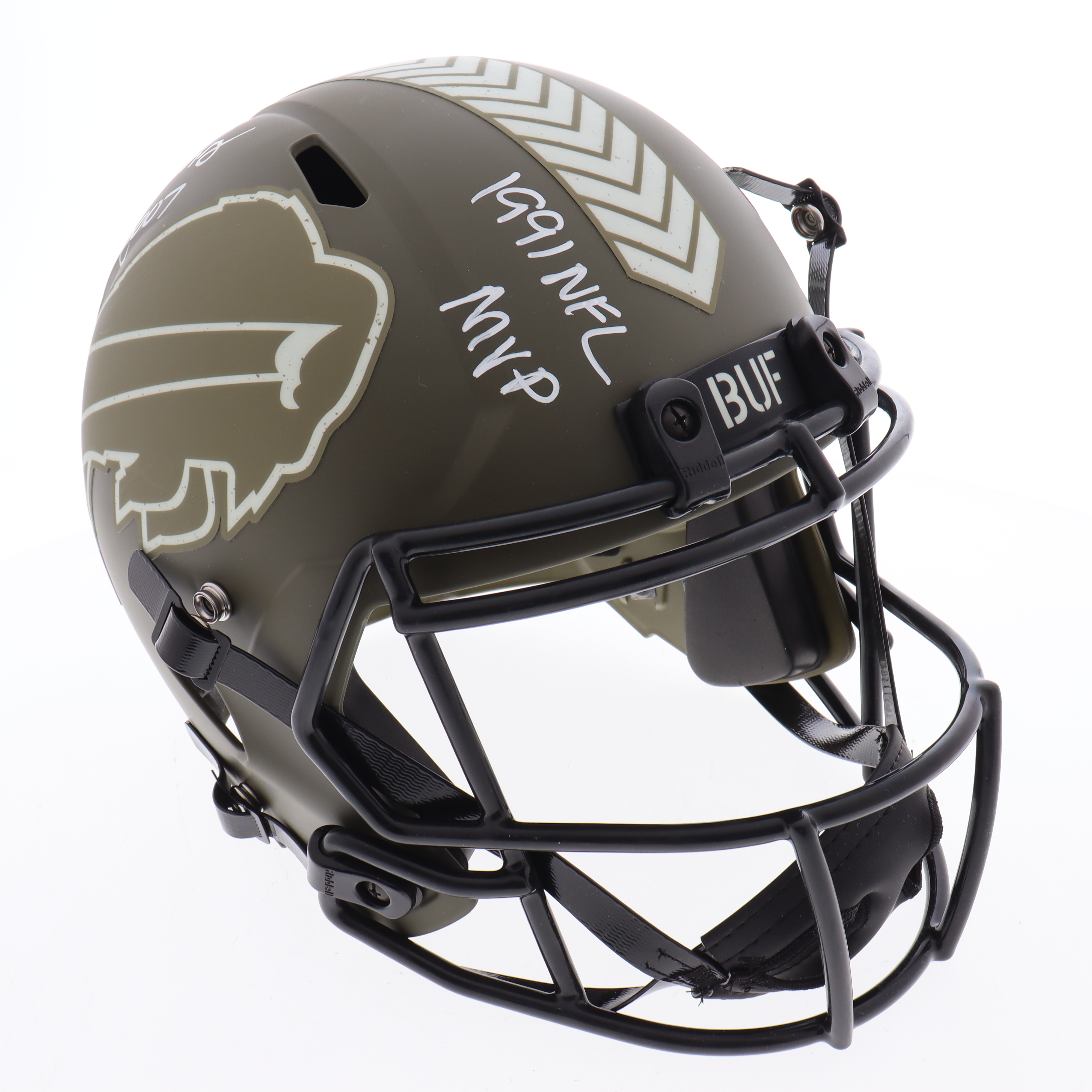 Riddell Buffalo Bills full-size replica Salute to Service Alternate Speed helmet. Hand-signed and inscribed by Thurman Thomas (HOF).