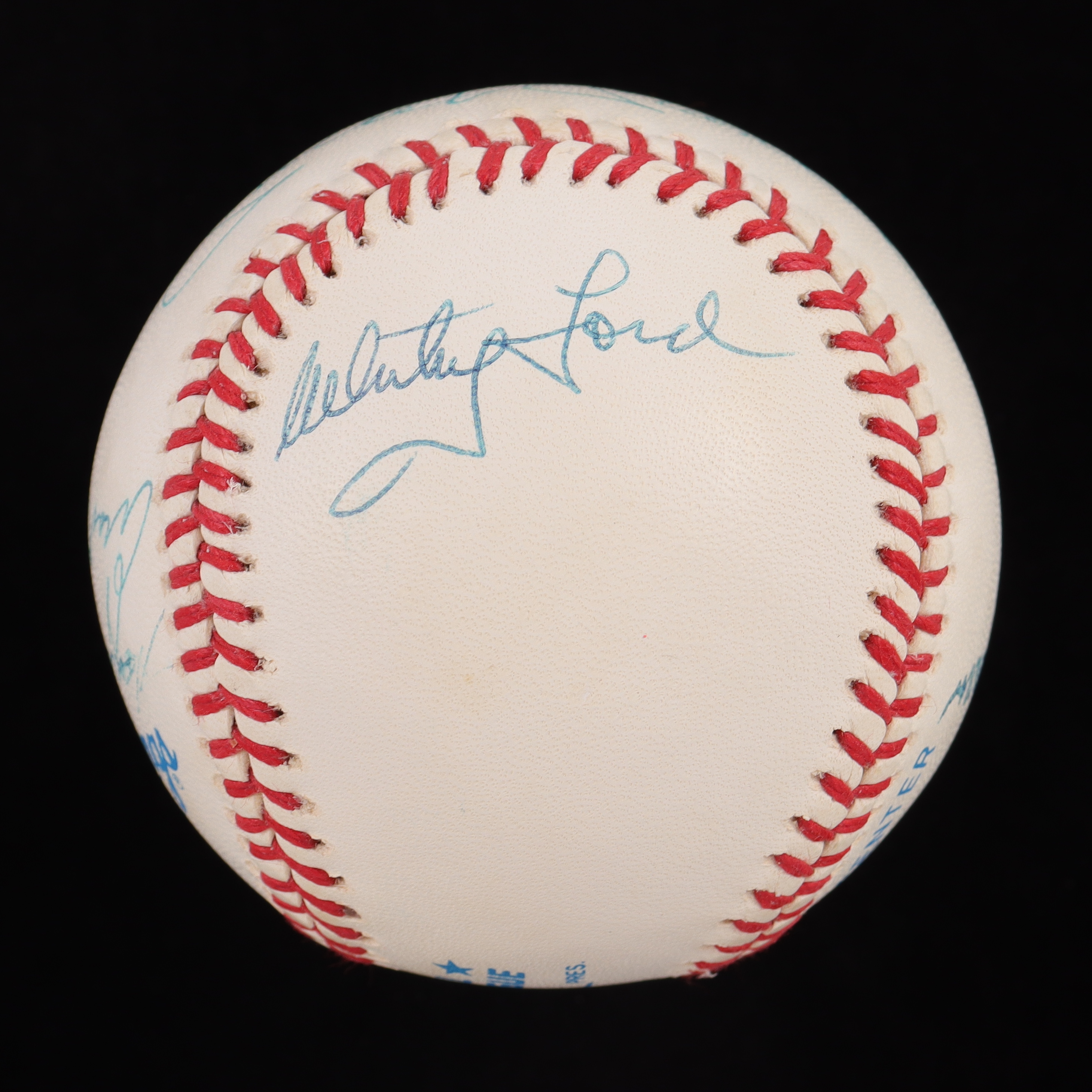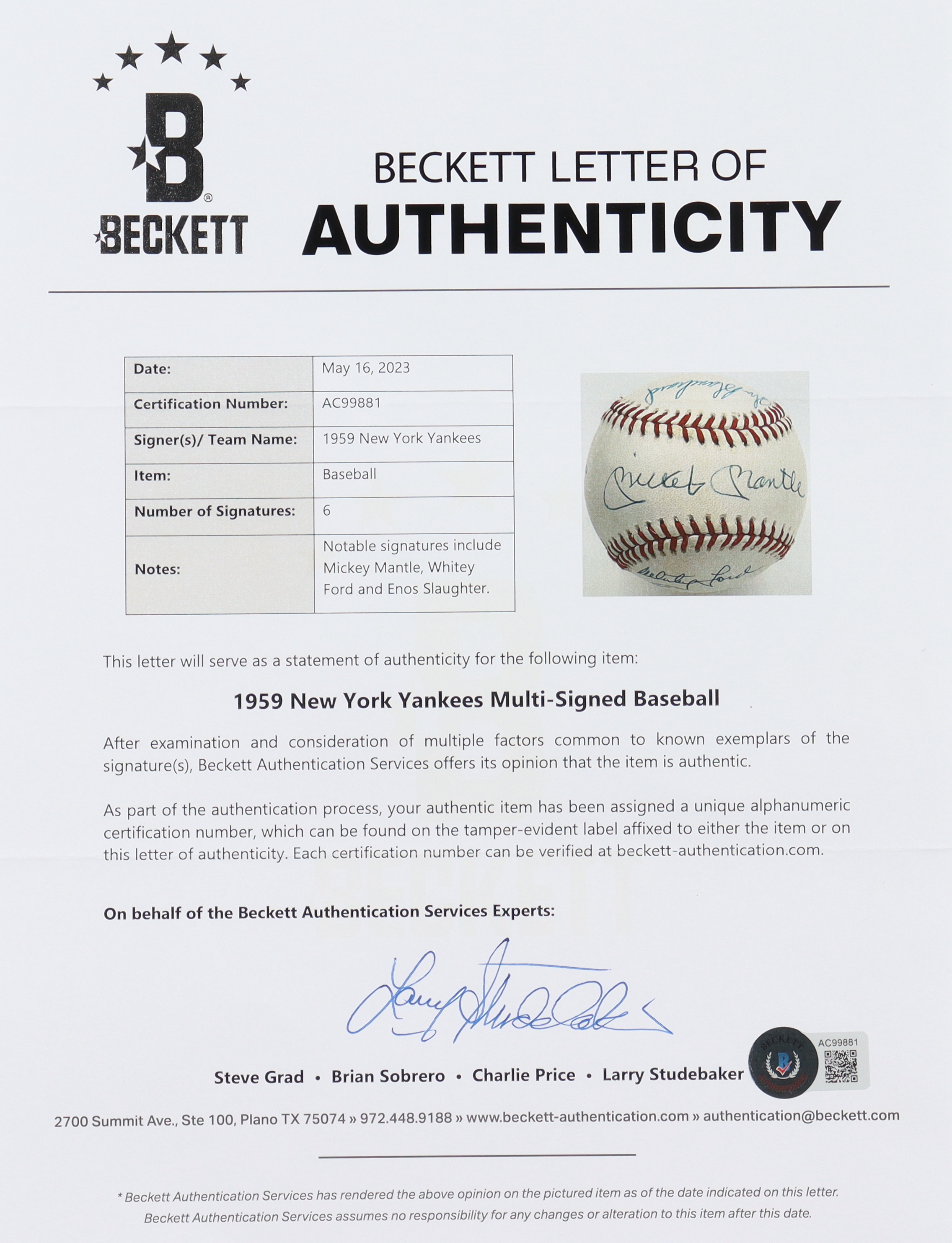 1959 Yankees OAL Baseball Signed By (6) With Mickey Mantle, Enos Slaughter, Whitey Ford (Beckett)