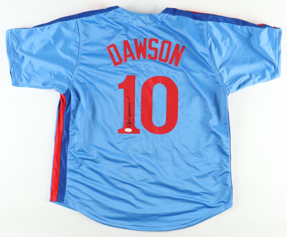 Custom jersey. Everything sewn on, size XL. Hand-signed by Andre Dawson (HOF).