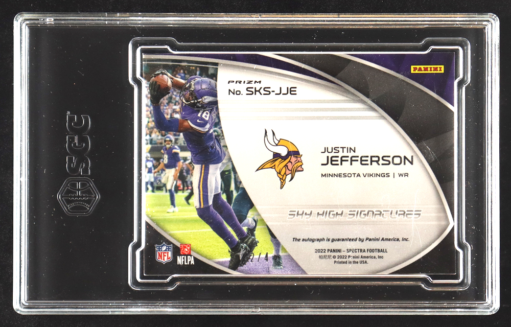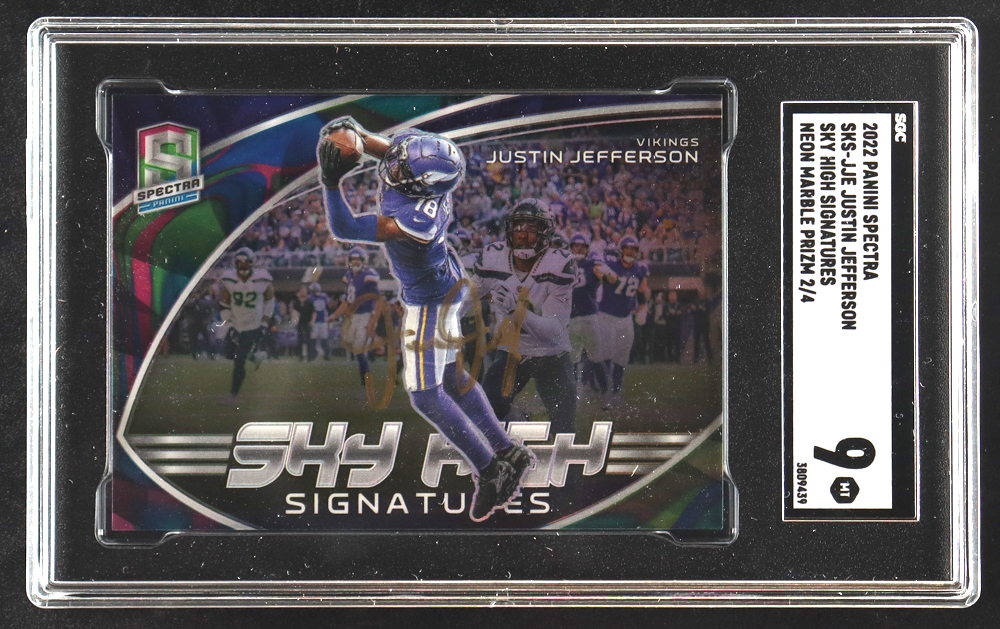 Justin Jefferson 2022 Panini Spectra Sky High Signatures Neon Marble #1 Auto (SGC 9)