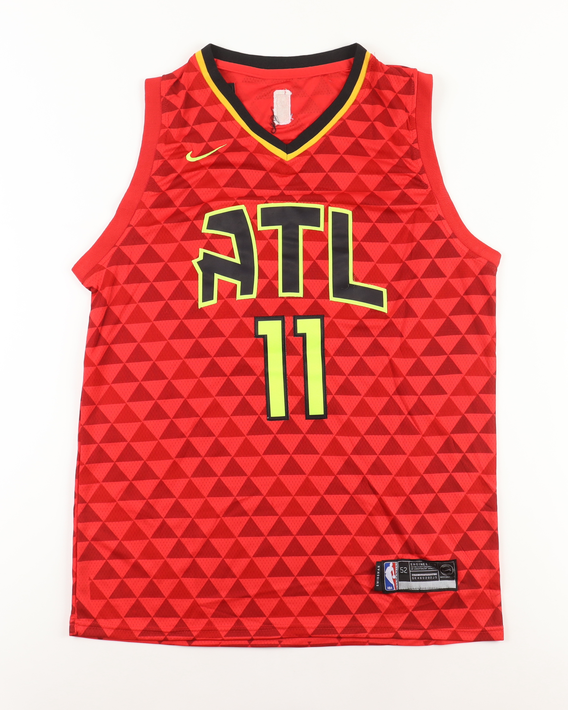 Custom jersey with everything sewn on, size XL. Hand-signed by Trae Young.