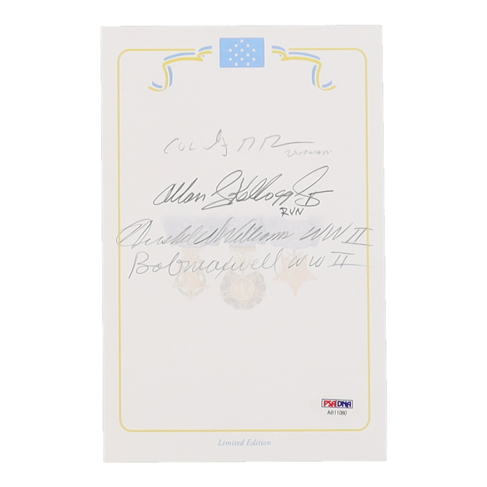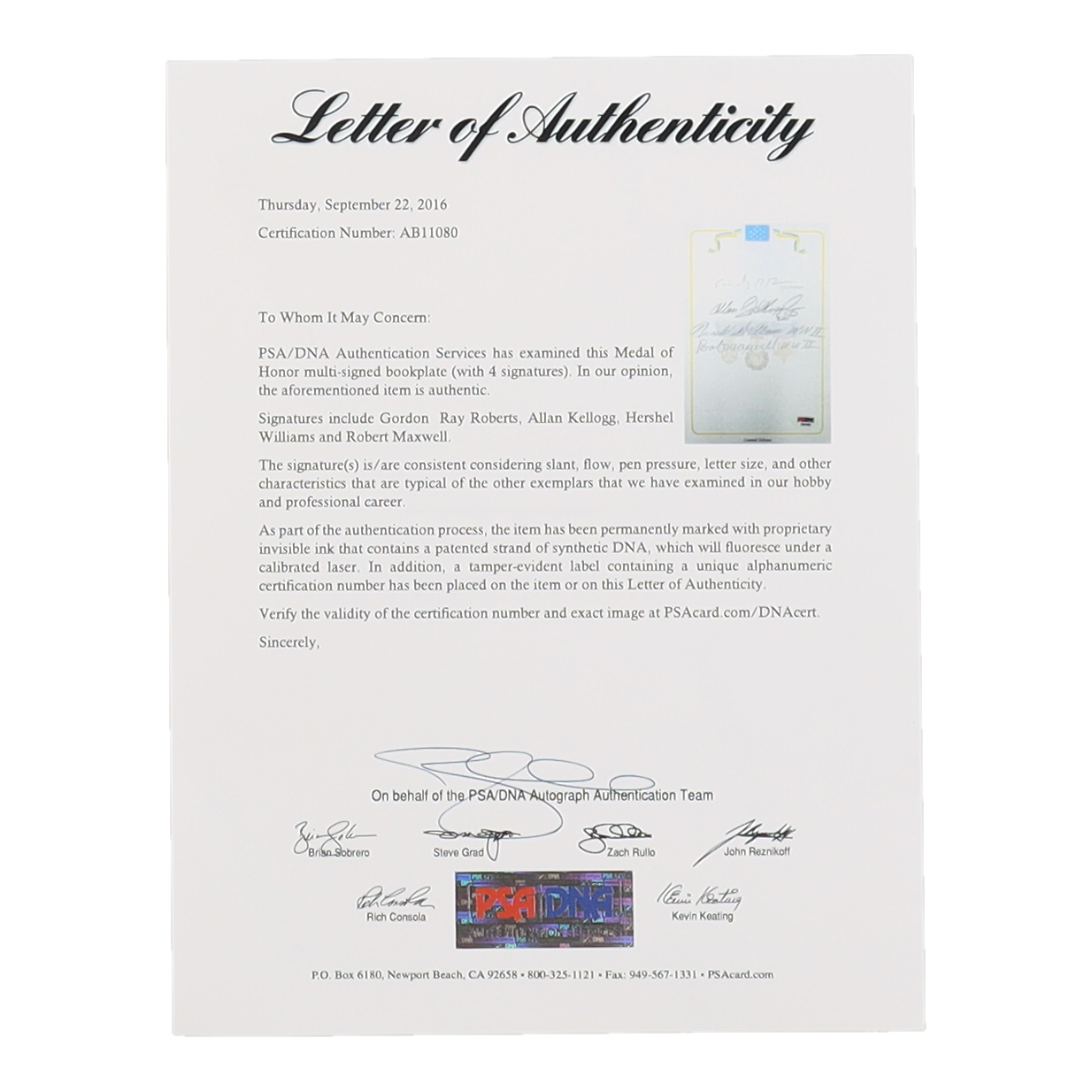 Medal of Honor LE Bookplate Signed by Gordon Ray Roberts, Allan Kellogg, Hershel Williams & Robert Maxwell with Multiple Inscriptions (PSA)