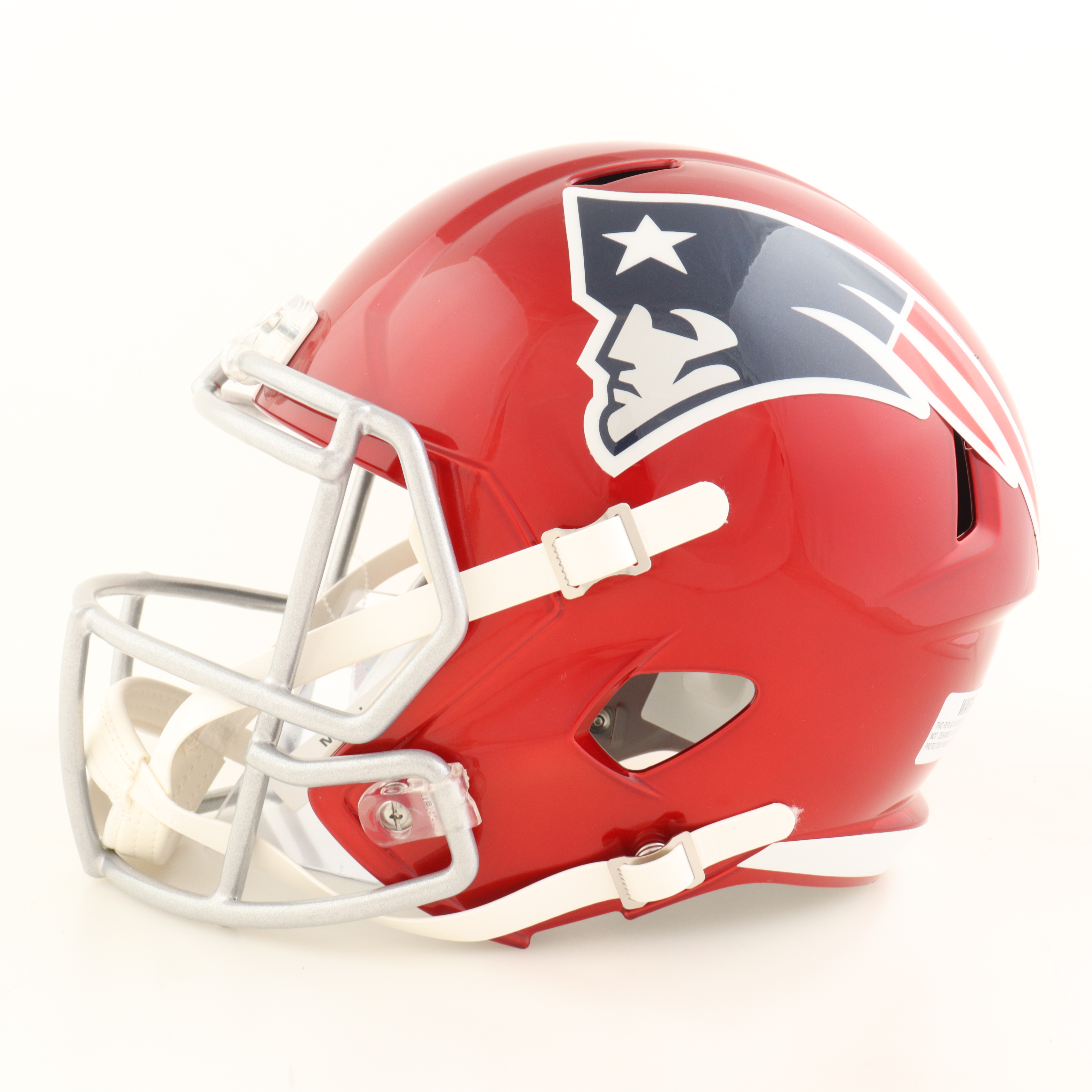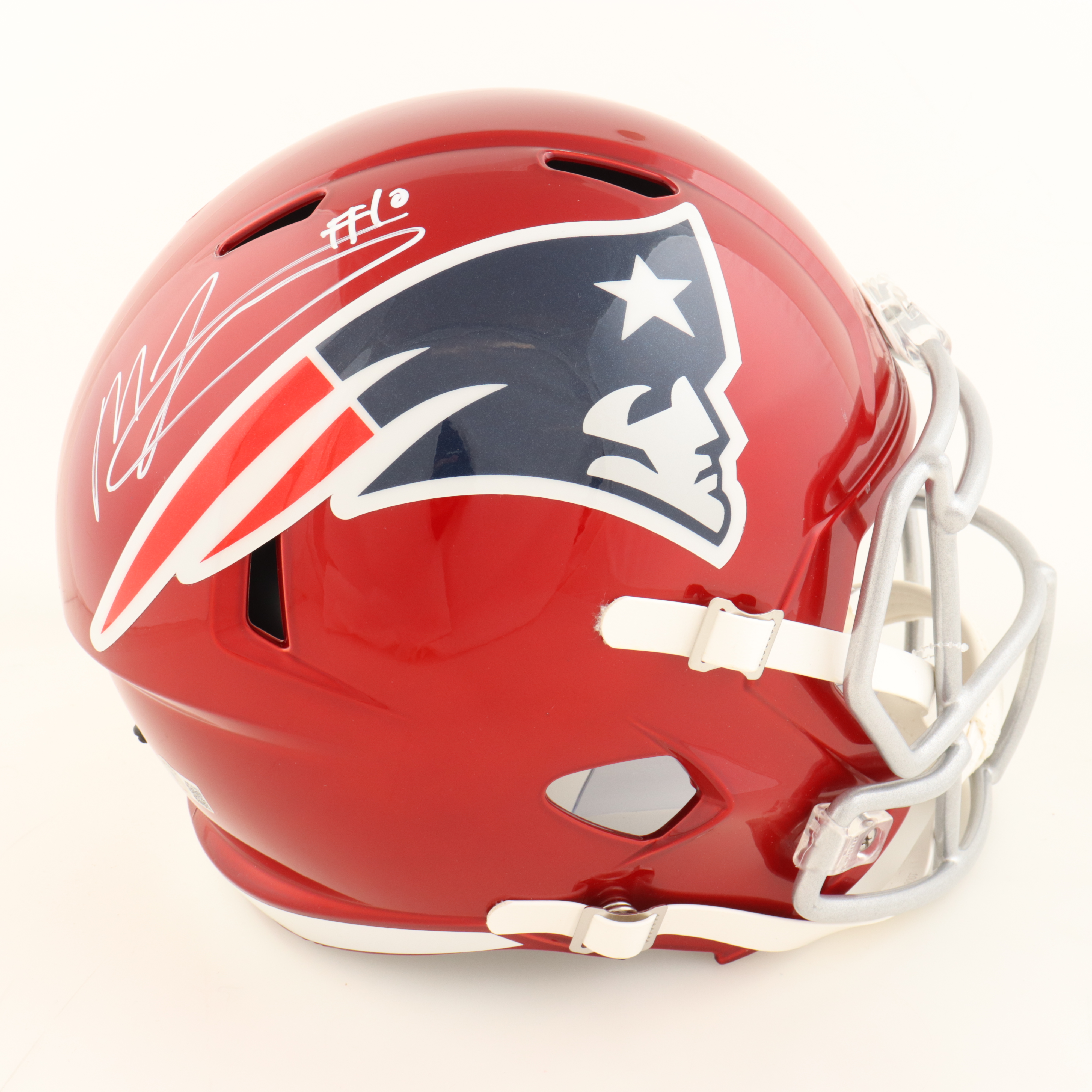 Riddell New England Patriots full-size replica Flash Alternate Speed helmet. Hand-signed by Mac Jones.
