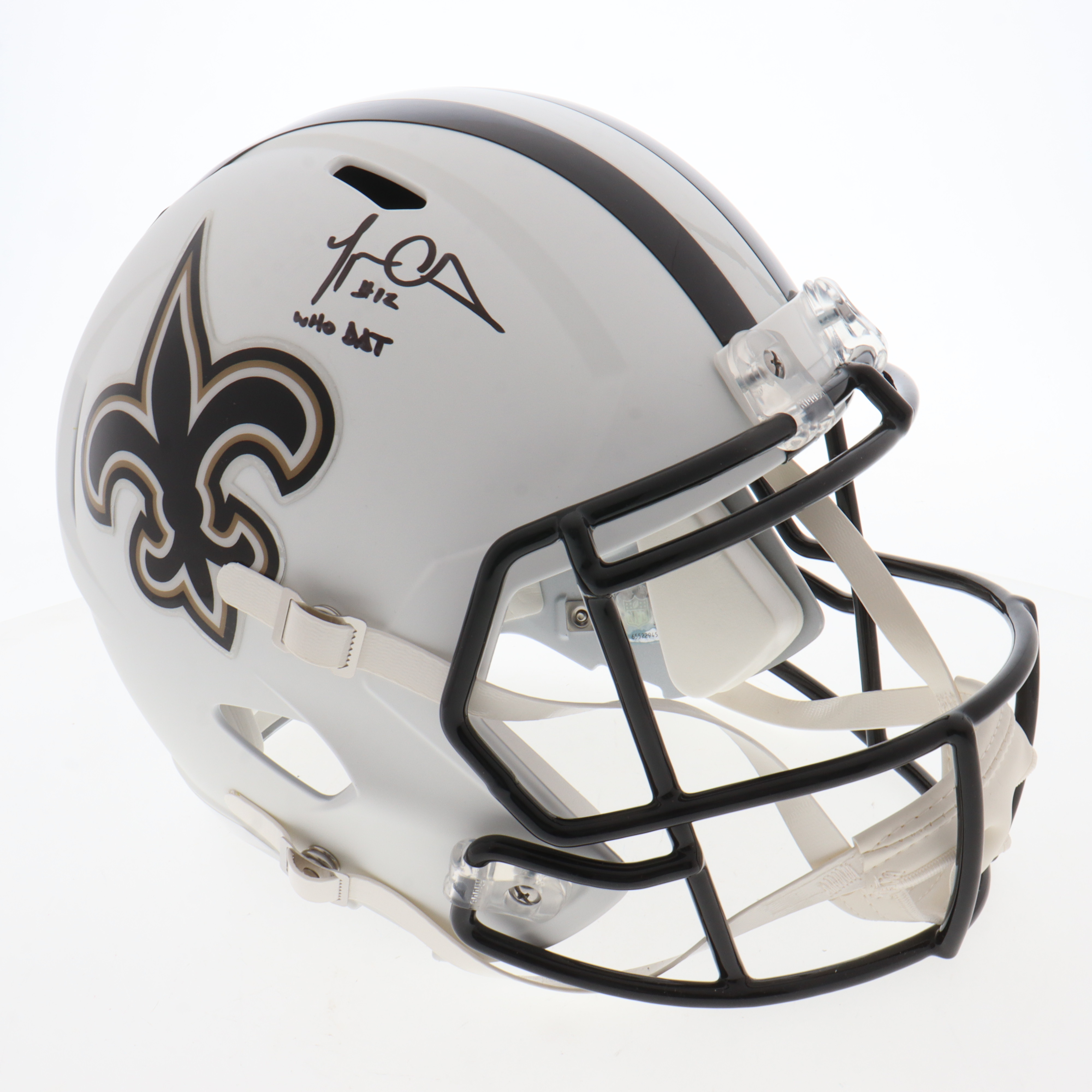 Riddell New Orleans Saints full-size replica matte white Speed helmet. Hand-signed by Marques Colston.