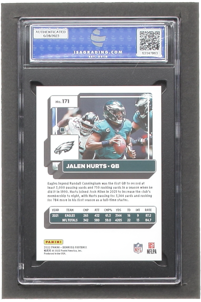 Jalen Hurts 2022 Donruss Press Proof Premium #171 (ISA 10)