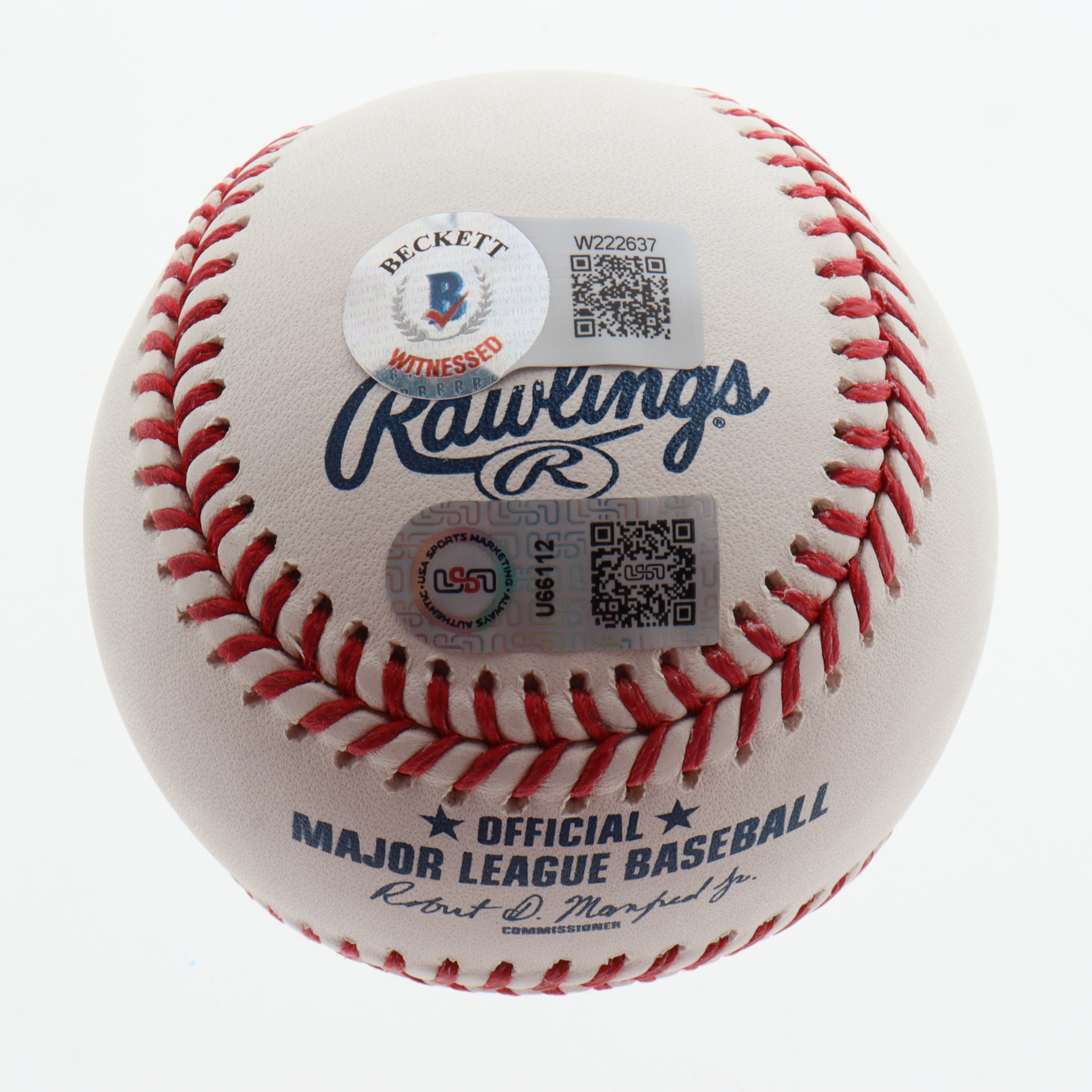The autograph(s) includes an official Beckett Authentication Services hologram, as well as an official USA Sports Marketing (USA SM) hologram and matching COA for authenticity purposes. The signing of this item was witnessed by Beckett.