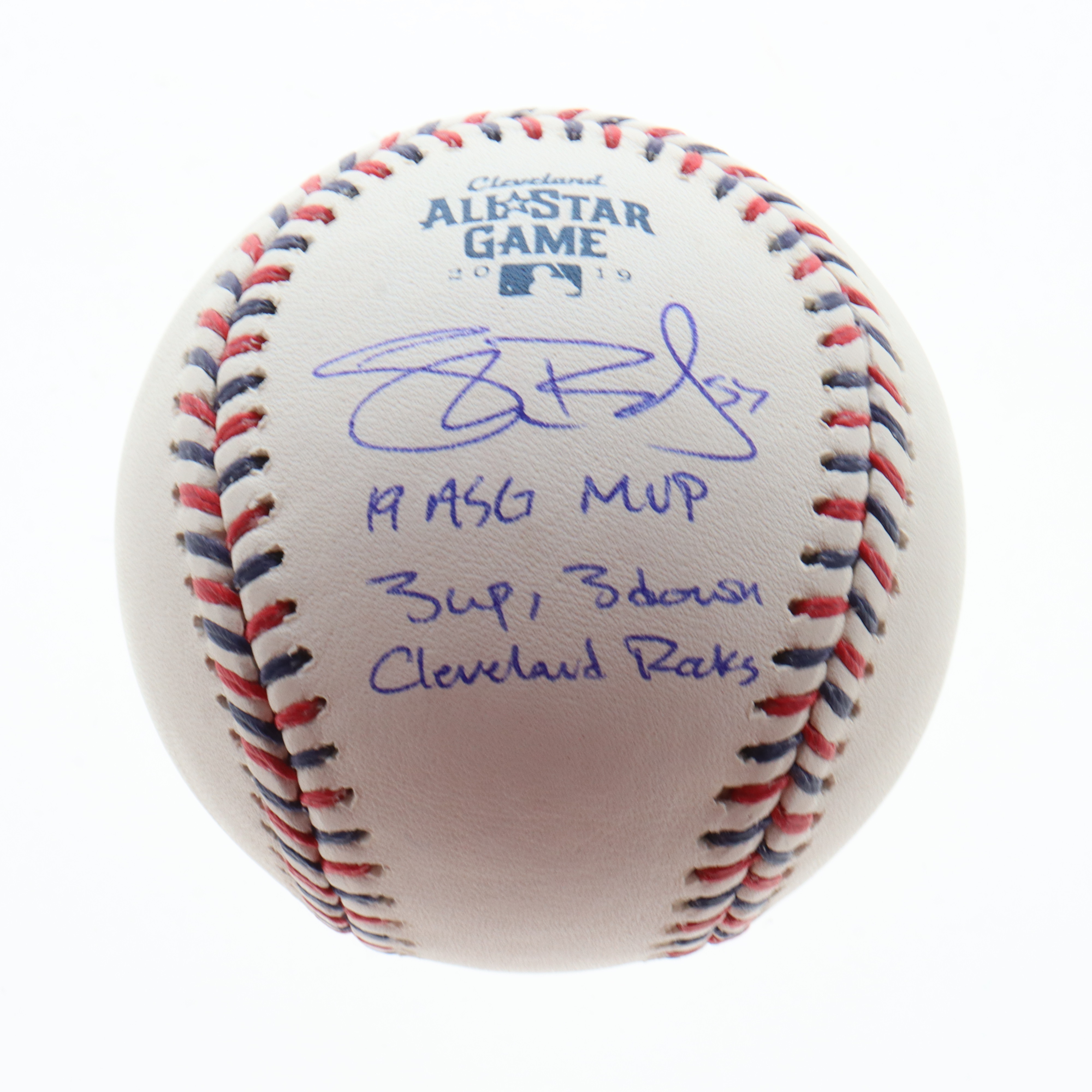 Rawlings Official 2019 All-Star Game baseball. Hand-signed and inscribed by Shane Bieber (Cleveland Indians).