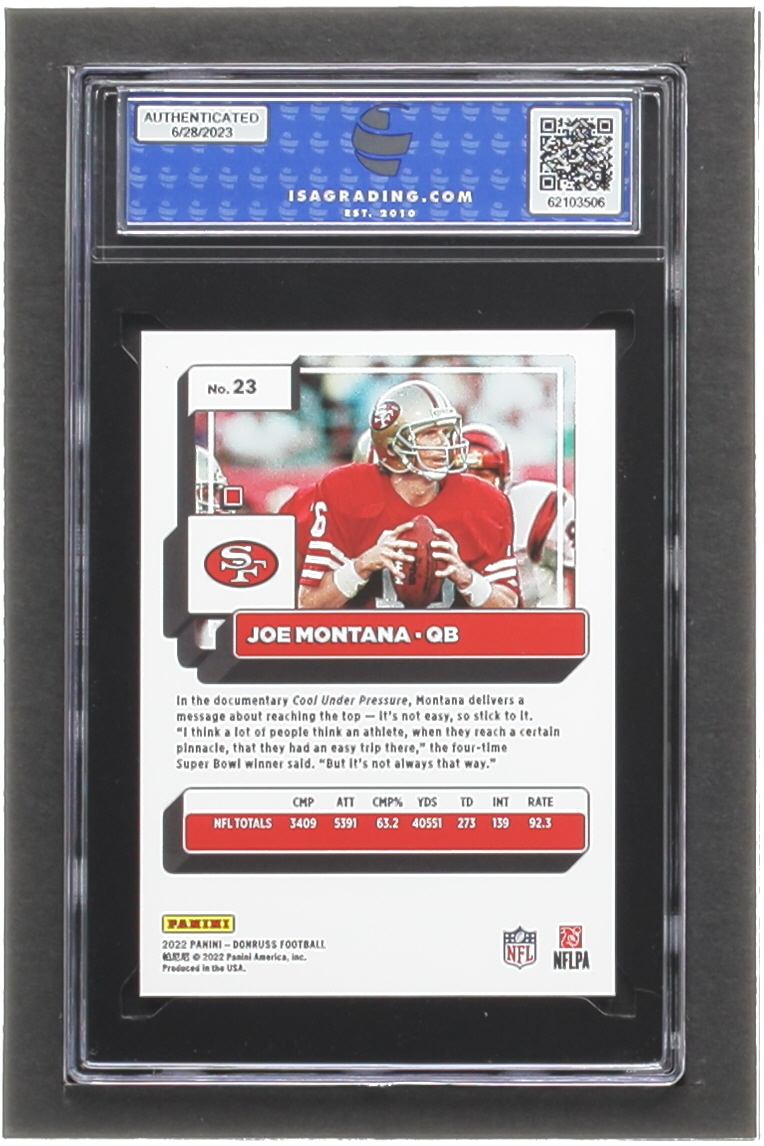 Joe Montana 2022 Donruss Press Proof Premium #23 (ISA 10)
