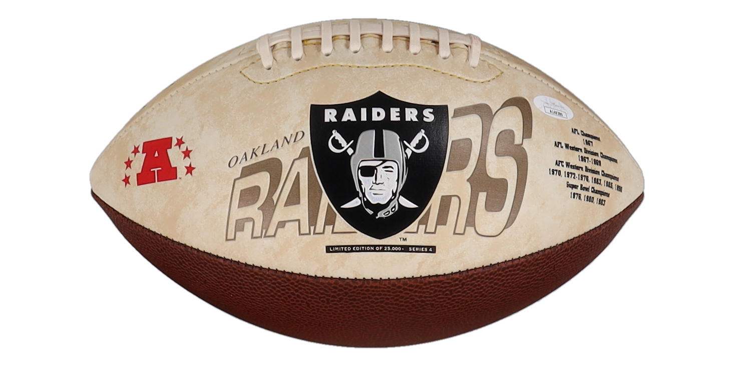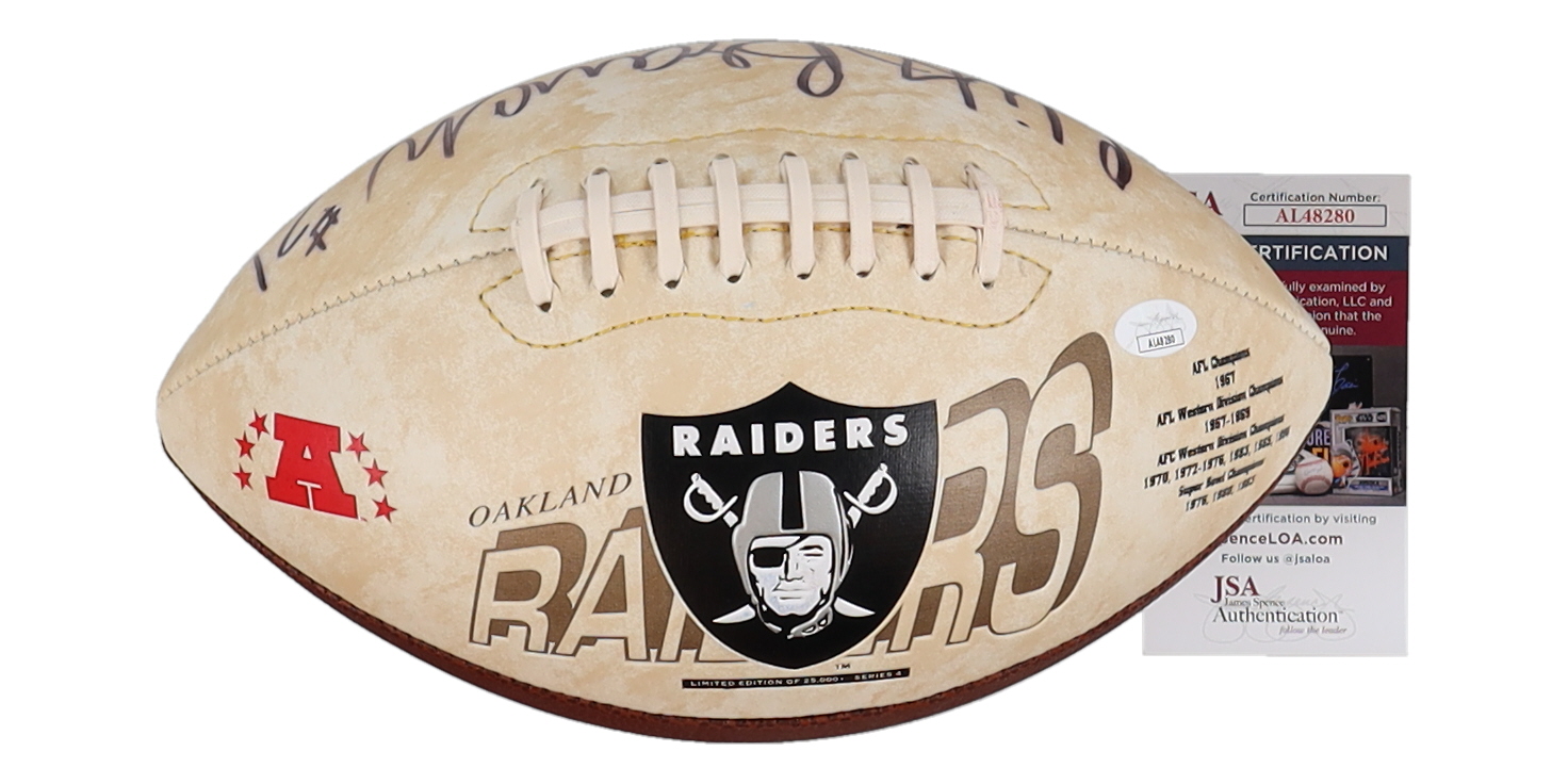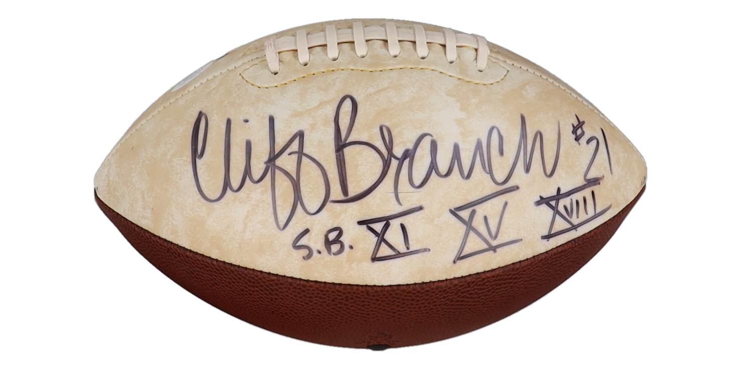 Cliff Branch Signed Raiders Logo Football Inscribed "S.B. XI XV XVIII" (JSA)