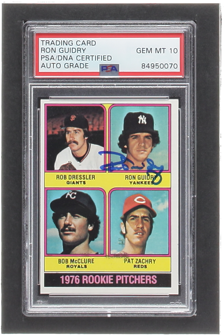 Ron Guidry Signed 1976 Topps #599 Rookie Pitchers / Rob Dressler / Ron Guidry / Bob McClure / Pat Zachry RC (PSA | Auto 10)