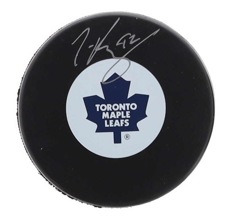 Toronto Maples Leafs logo hockey puck has been hand-signed by Tyler Bozak.