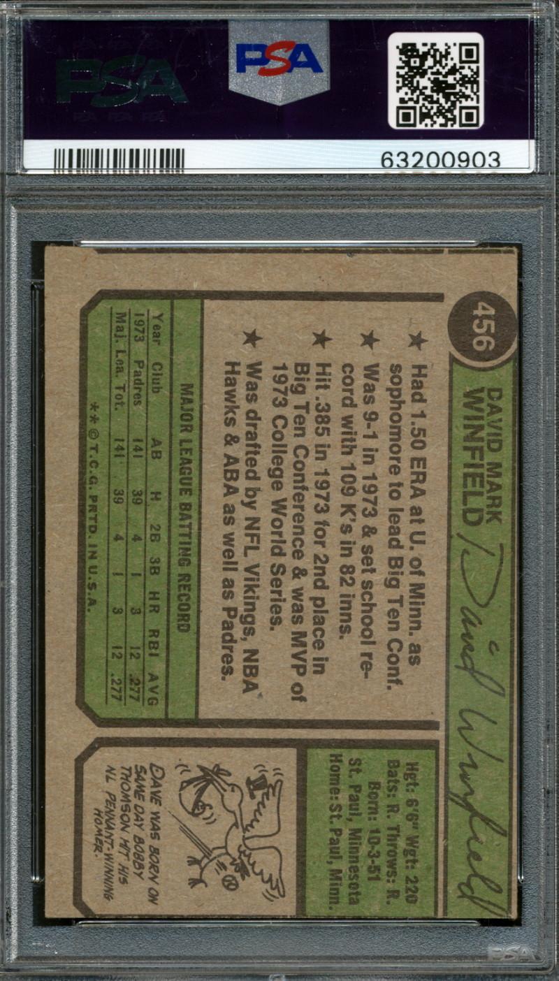 Dave Winfield Signed 1974 Topps #456 RC (PSA)