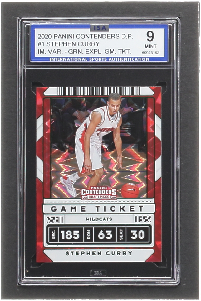 Stephen Curry 2020-21 Panini Contenders Draft Picks Variations Game Ticket Green Explosion #1 (ISA 9)