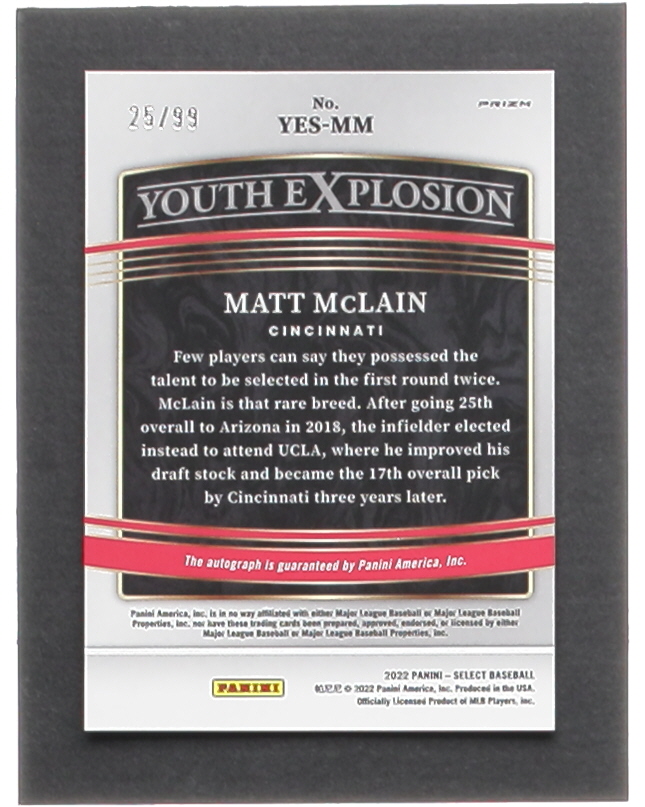 Matt McLain 2022 Select Youth Explosion Signatures Tri-Color #5 #25/99