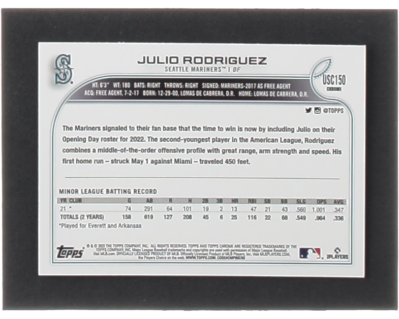 Julio Rodriguez 2022 Topps Chrome Update Pink Wave Refractors #USC150 RC