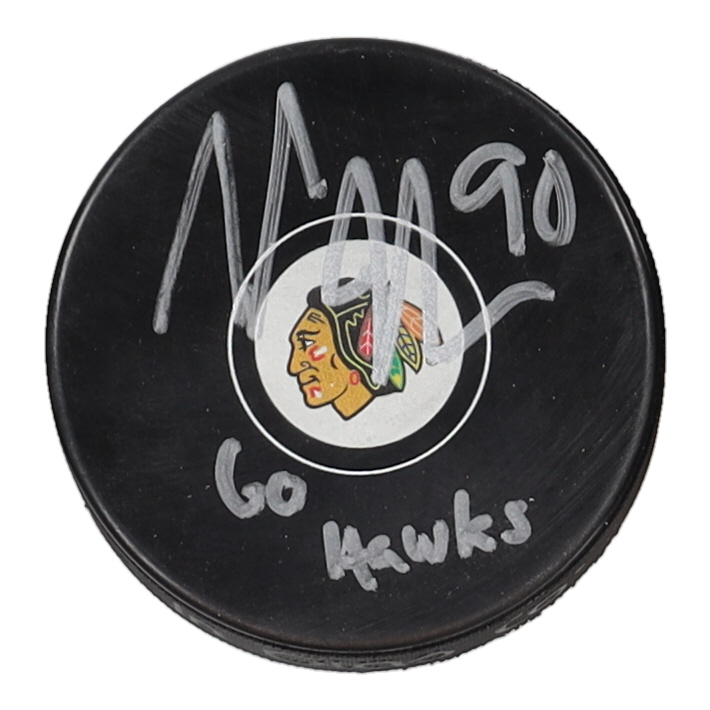 Tyler Johnson Signed Blackhawks Logo Hockey Puck Inscribed "Go Hawks" (JSA)