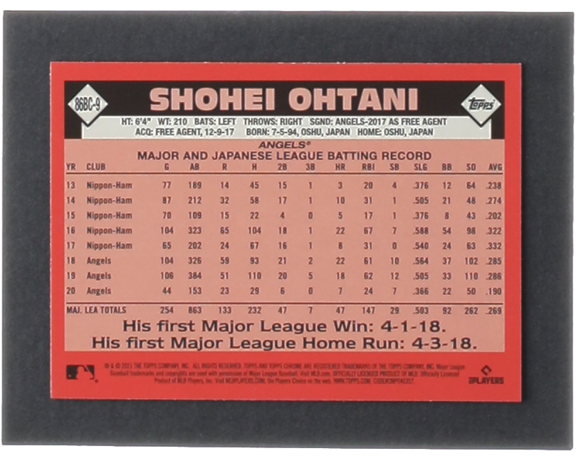 Shohei Ohtani 2021 Topps Chrome '86 Topps #86BC9
