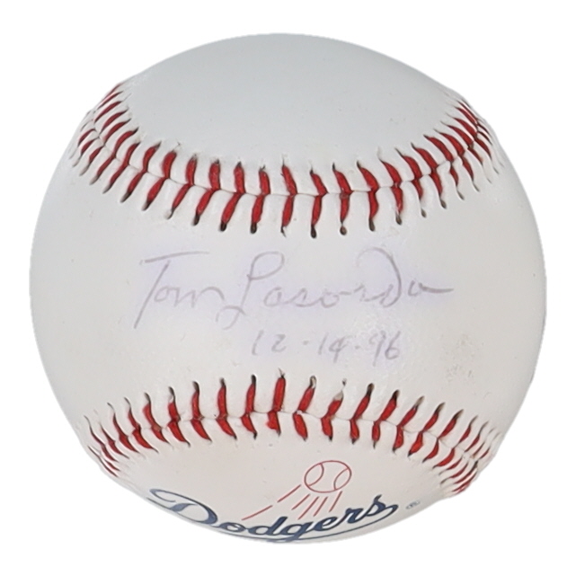 Tommy Lasorda Signed Dodgers Logo Baseball Inscribed "10-14-96" (JSA)