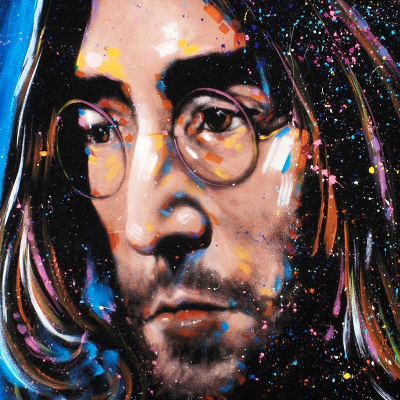With bright colors and expressive lines, Stephen Fishwick puts a unique spin on pop culture portraits. "Imagine" is a limited edition giclee on stretched canvas that measures 16" x 20" (image). Hand-signed by Stephen Fishwick (Artist).