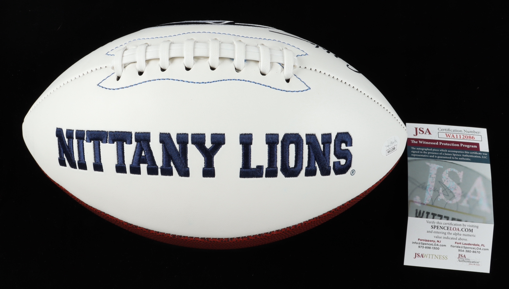 Penn State Nittany Lions logo football. Hand-signed and inscribed by Curt Warner.