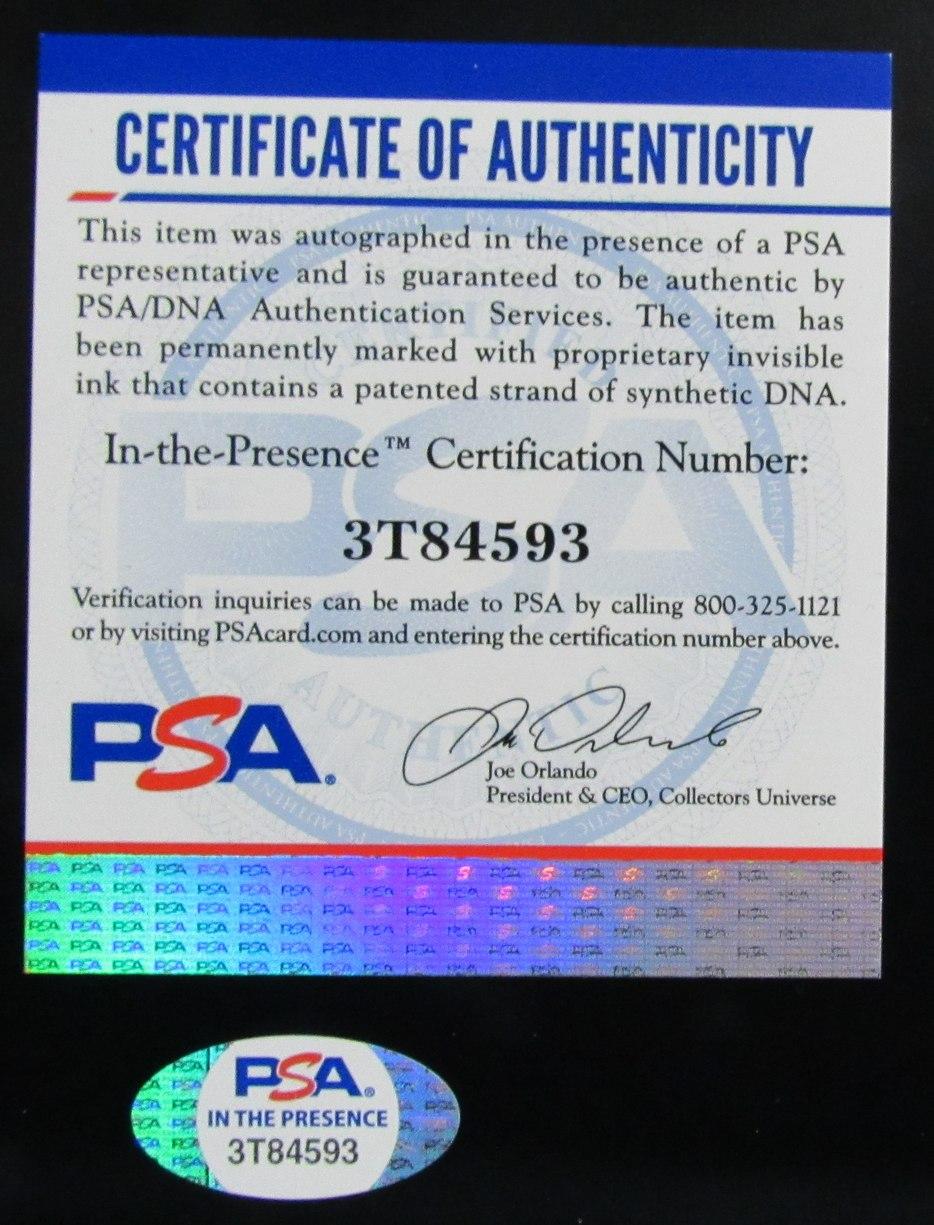 The autograph includes an official Beckett Authentication Services serially-numbered hologram and an official PSA/DNA hologram and matching COA for authenticity purposes. The signing of this item was witnessed by PSA and Beckett.