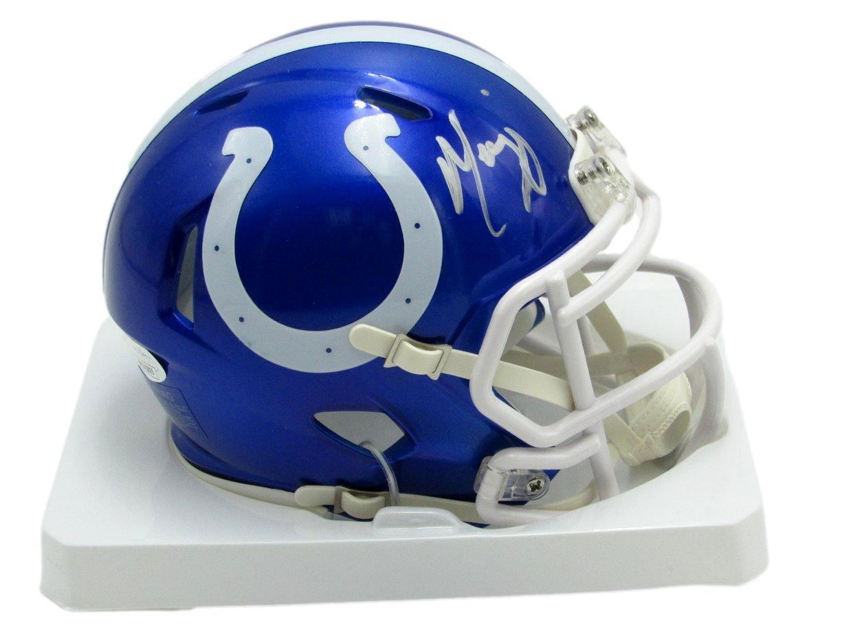 Riddell Indianapolis Colts Flash Alternarte speed mini helmet. Hand-signed by Marvin Harrison (HOF).