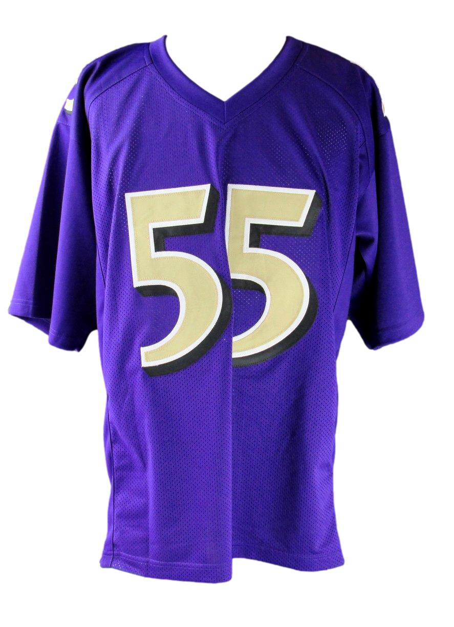 Custom on-field style jersey. Everything sewn on, size XL. Hand-signed by Terrell Suggs.