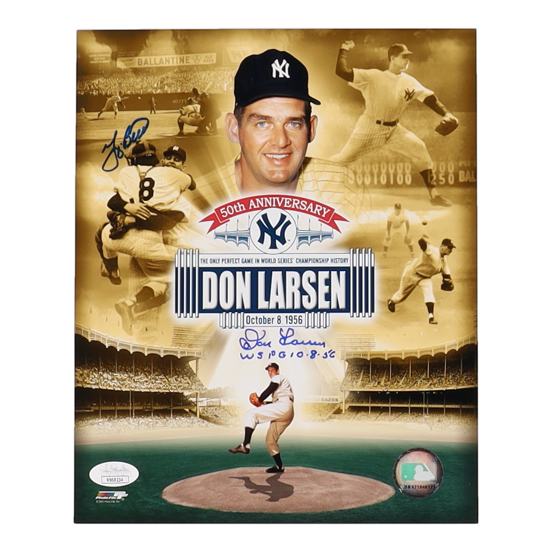 Don Larsen and Yogi Berra Signed Yankees 8x10 Photo Inscribed "WS PG 10-8-56" (JSA)