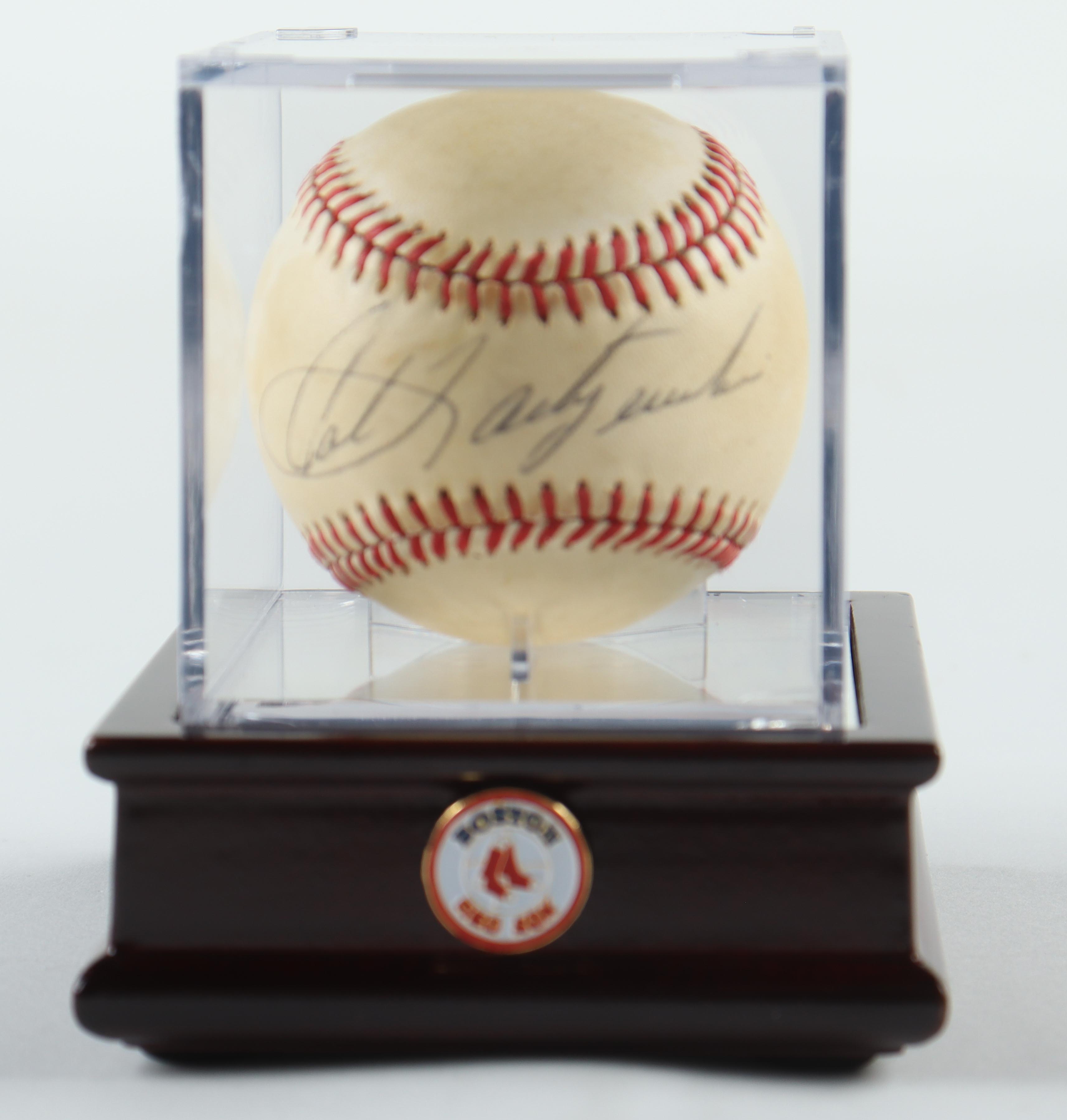 Rawlings Official American League baseball. Hand-signed by Carl Yastrzemski (Boston Red Sox, HOF). Includes display case as shown.