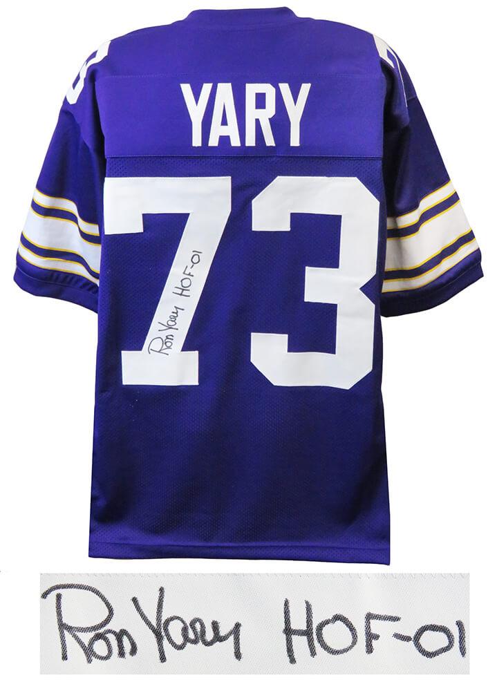 Custom jersey. Everything is sewn on, size XL. Hand-signed and inscribed by Ron Yary (HOF).