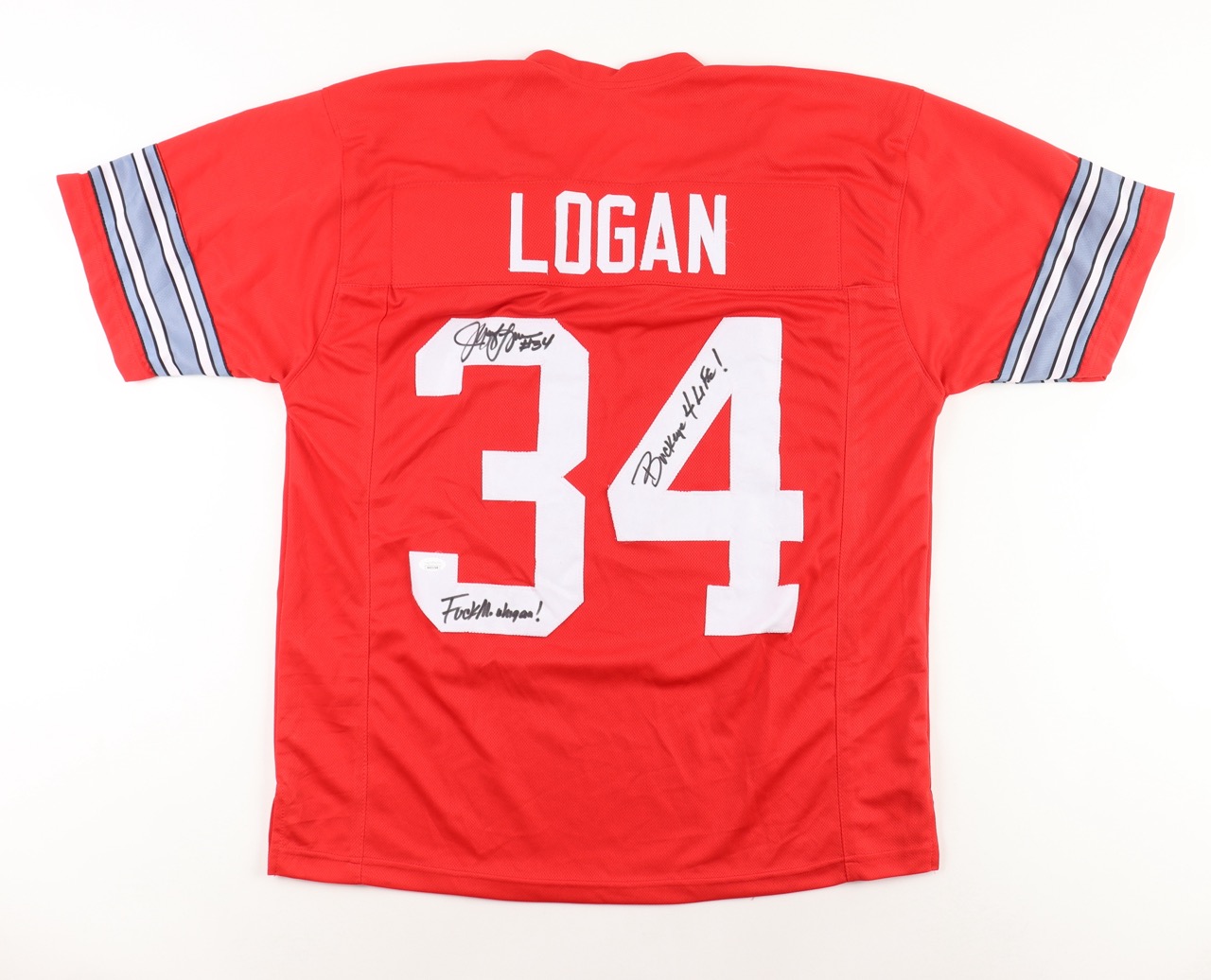 Jeff Logan Signed Jersey Inscribed F**k Michigan" & "Buckeye 4 Life!" (JSA)