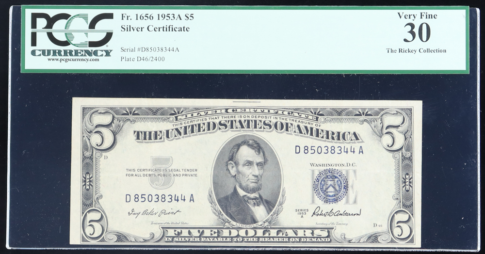 1953-A U.S. $5 Silver Certificate - The Rickey Collection (PCGS VF30)