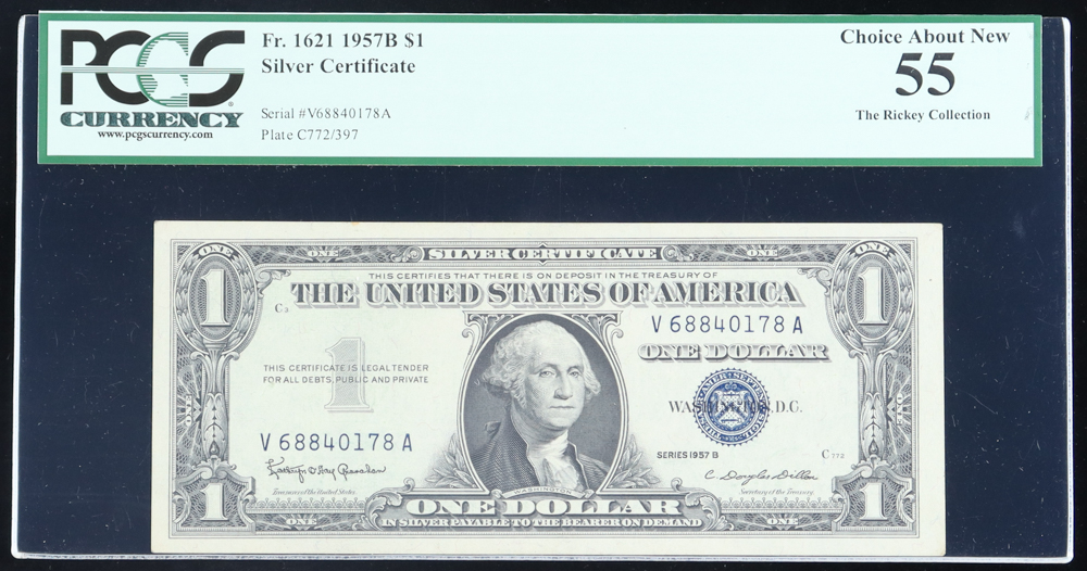 1957-B U.S. $1 Silver Certificate - The Rickey Collection (PCGS CHOICE ABOUT NEW 55)