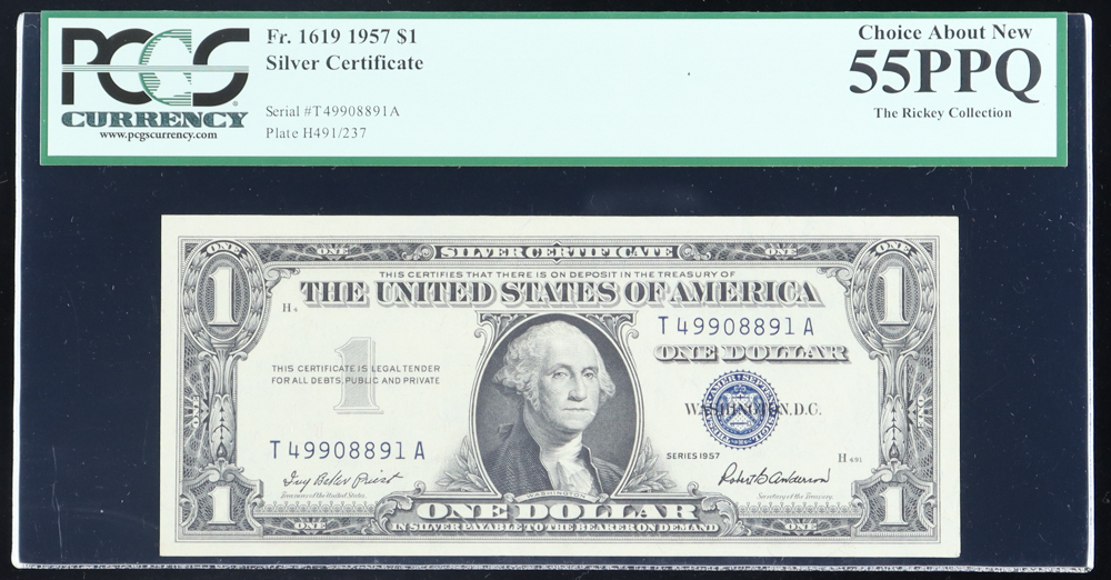 1957 U.S. $1 Silver Certificate - The Rickey Collection (PCGS CHOICE ABOUT NEW 55PPQ)