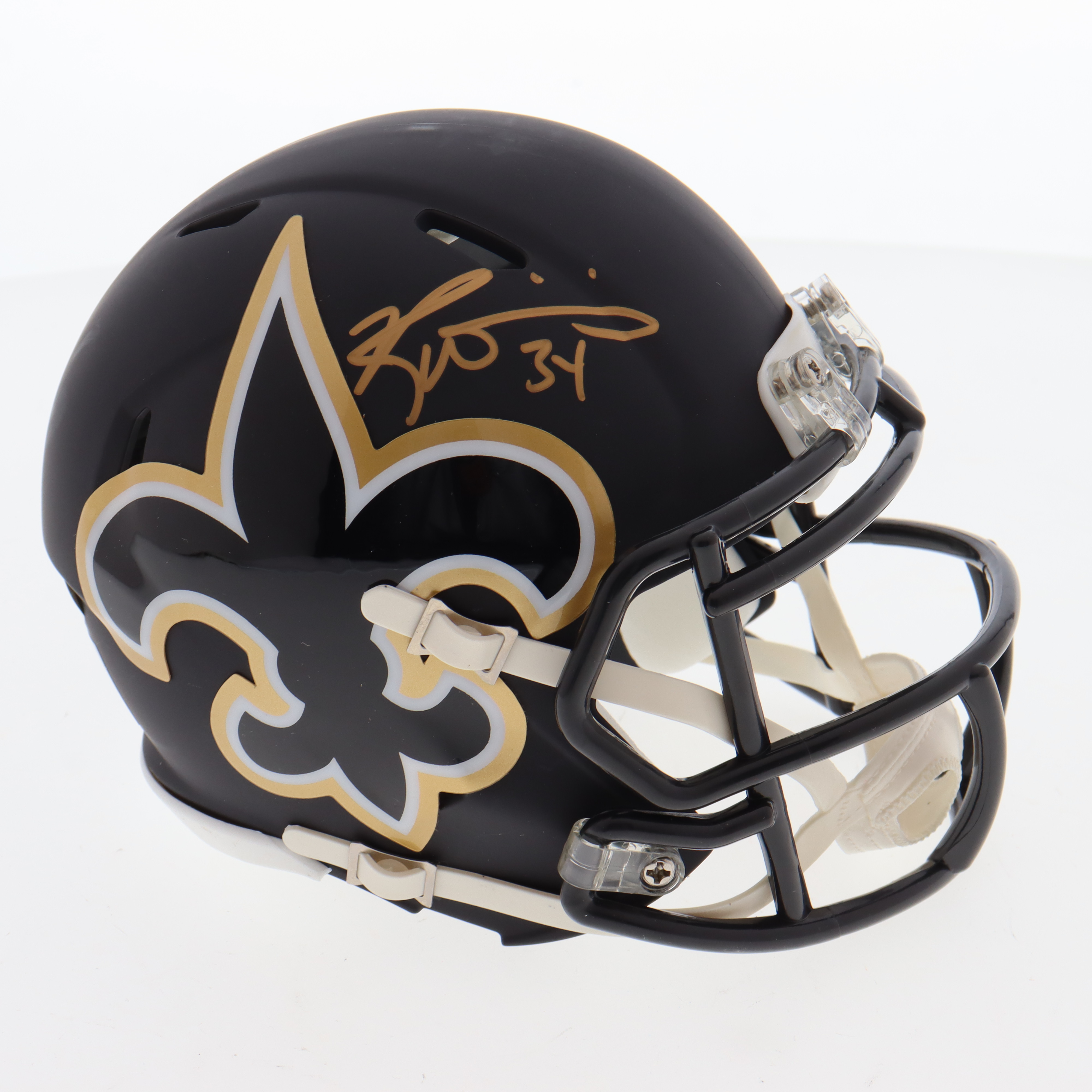 Riddell New Orleans Saints Amp Alternate speed mini helmet. Hand-signed by Ricky Williams.