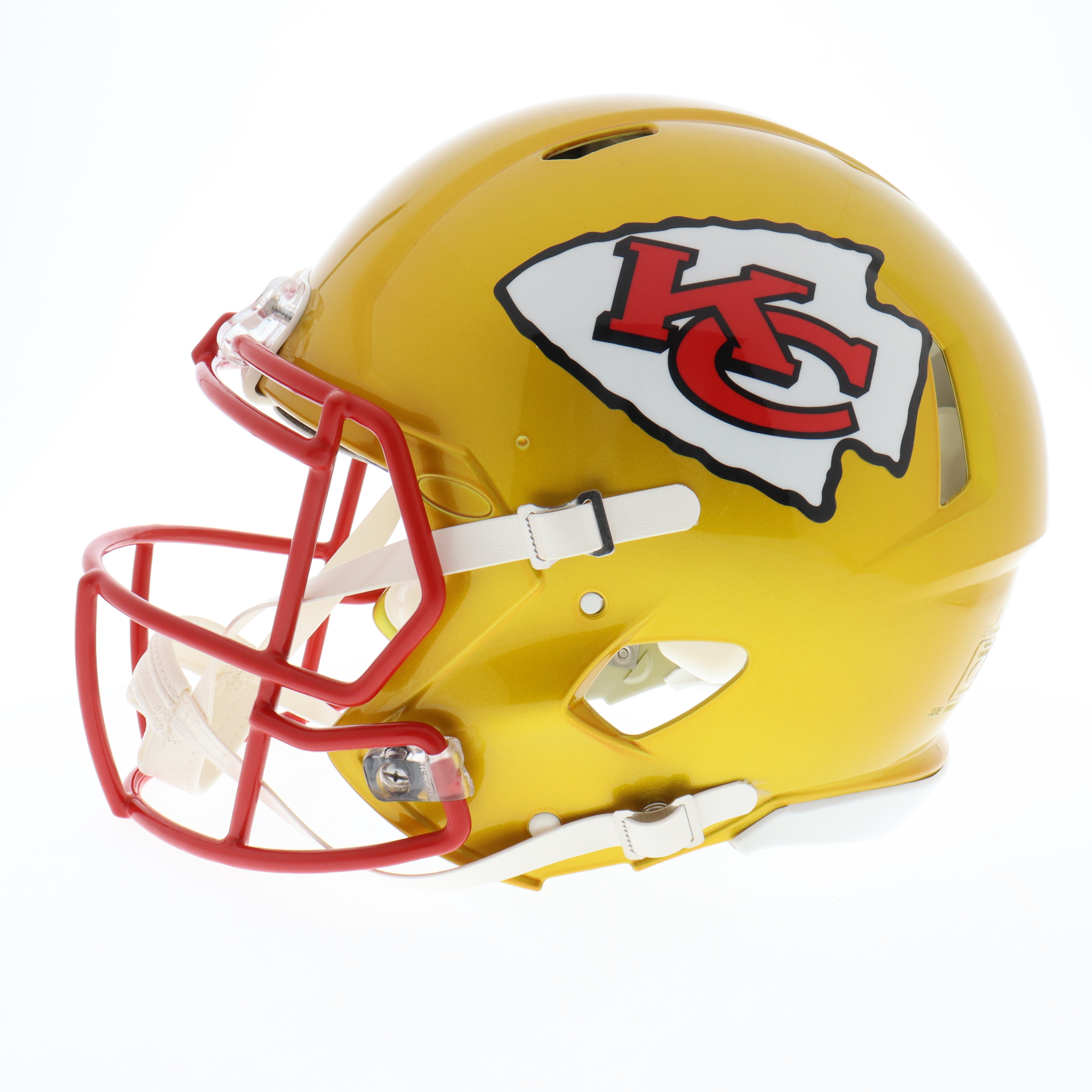 Riddell Kansas City Chiefs full-size authentic on-field Flash Alternate Speed helmet. Hand-signed by Isiah Pacheco.