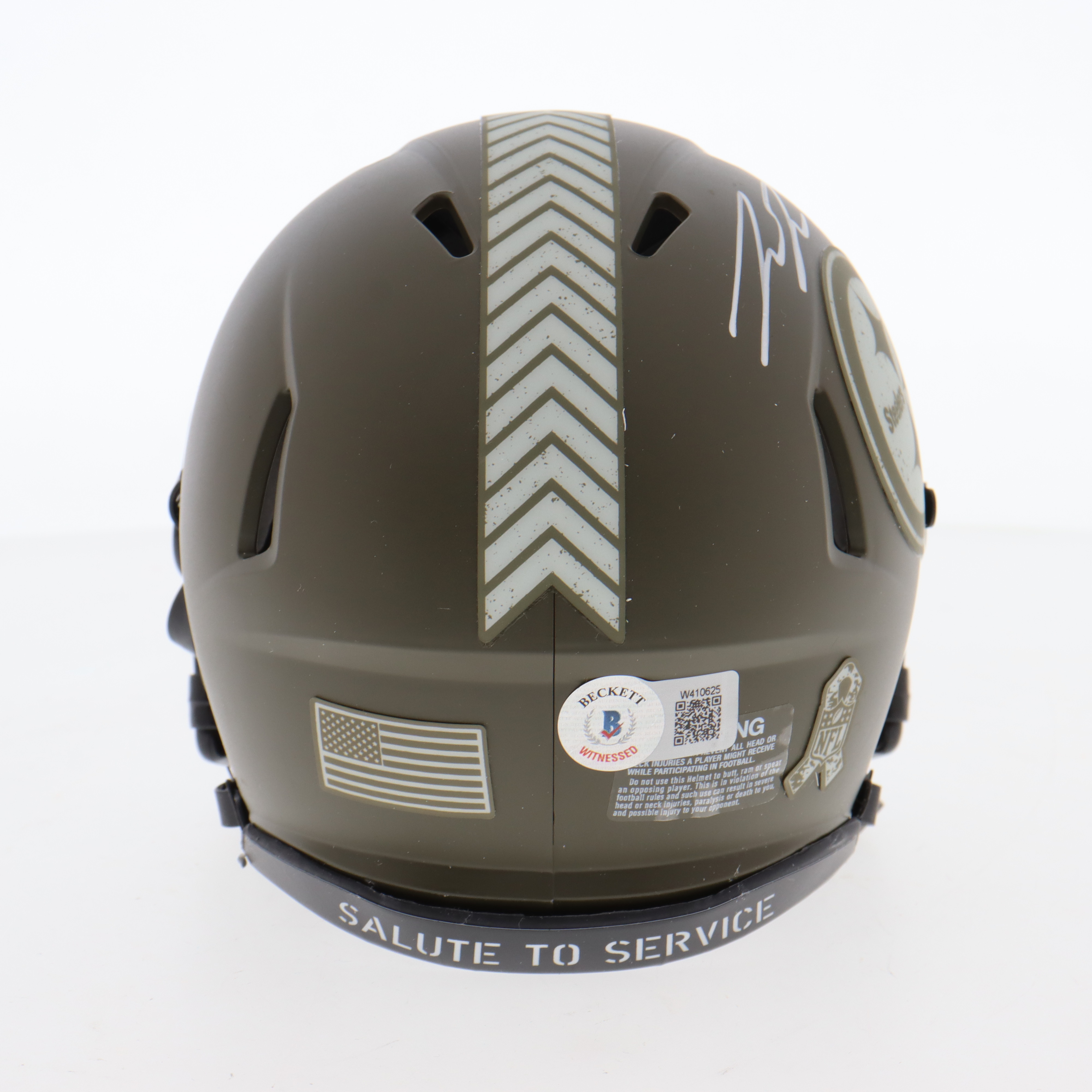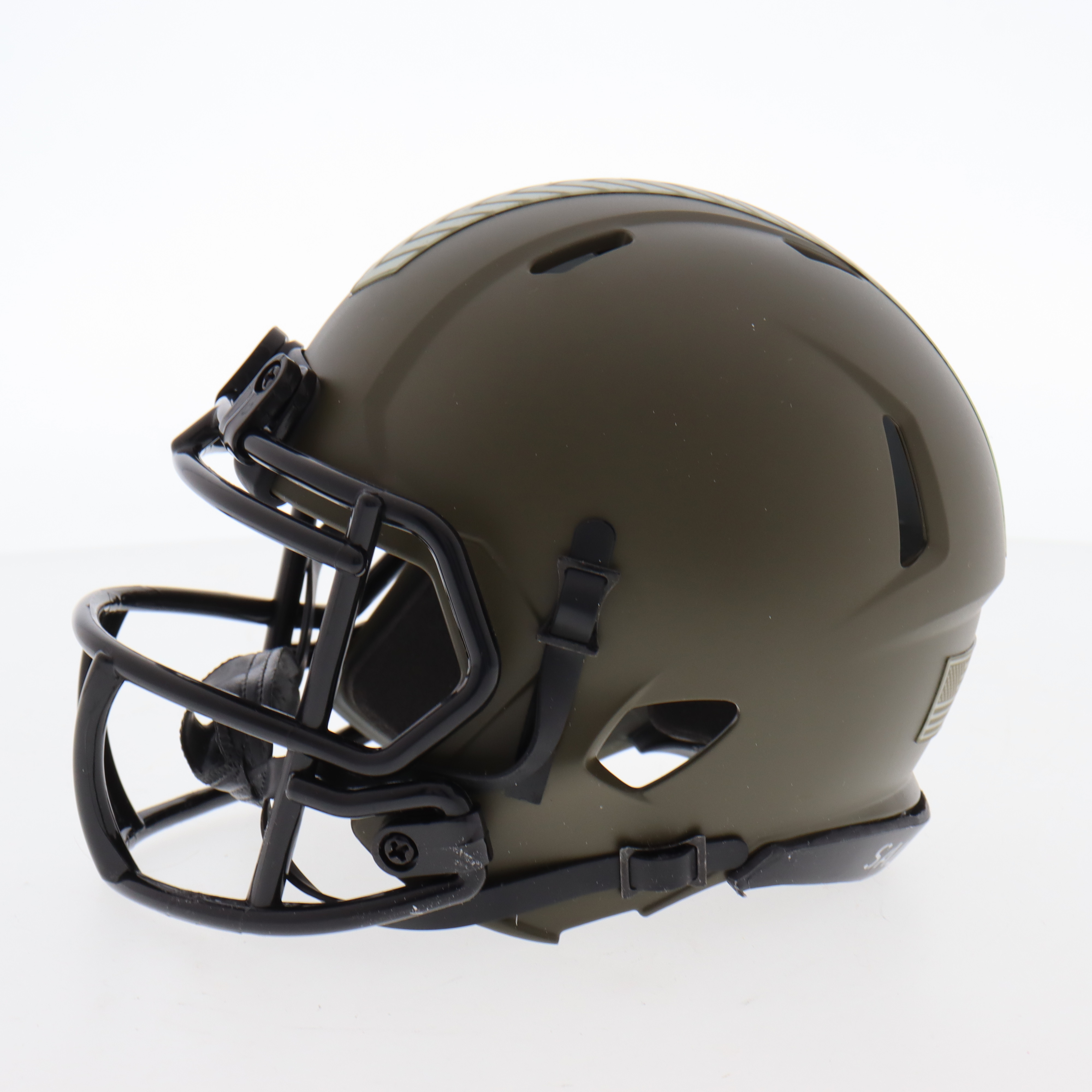 Riddell Pittsburgh Steelers Salute to Service alternate speed mini helmet. Hand-signed by Pat Freiermuth.