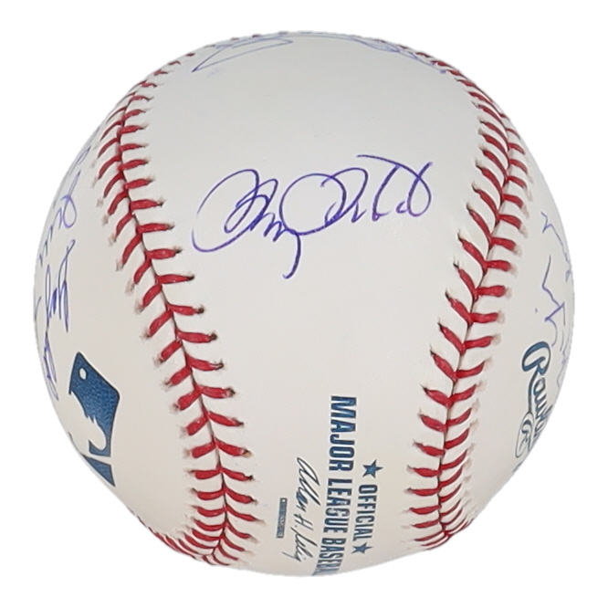 Rawlings Official Major League Baseball. Has been hand-signed by Jack McDowell, Doug Drabek, Denny McLain, Mike McCormick, Jim Perry, Mike Scott, Mark Davis, Gaylord Perry, Jim Lonborg, Vern Law, and Randy Jones.