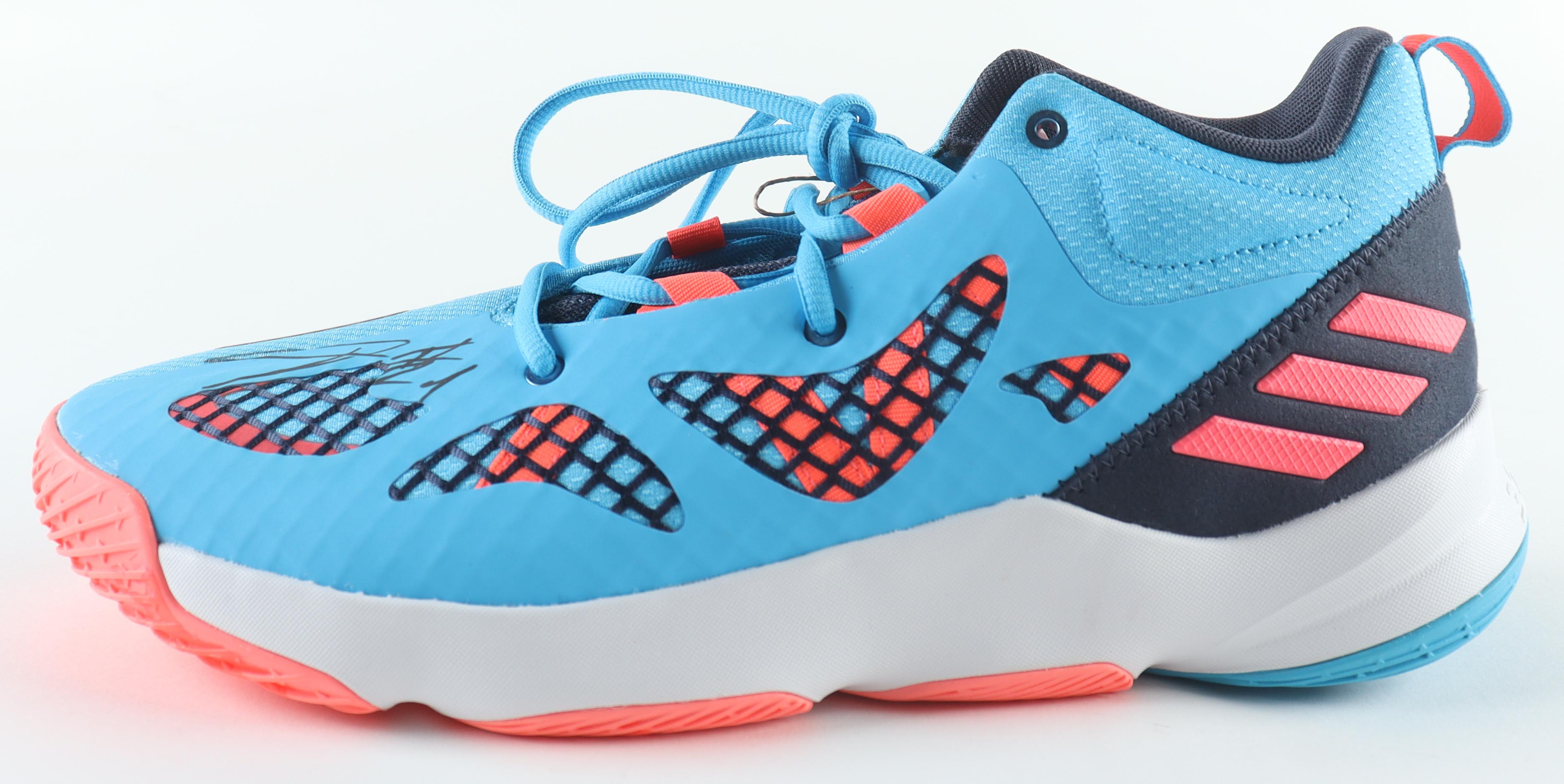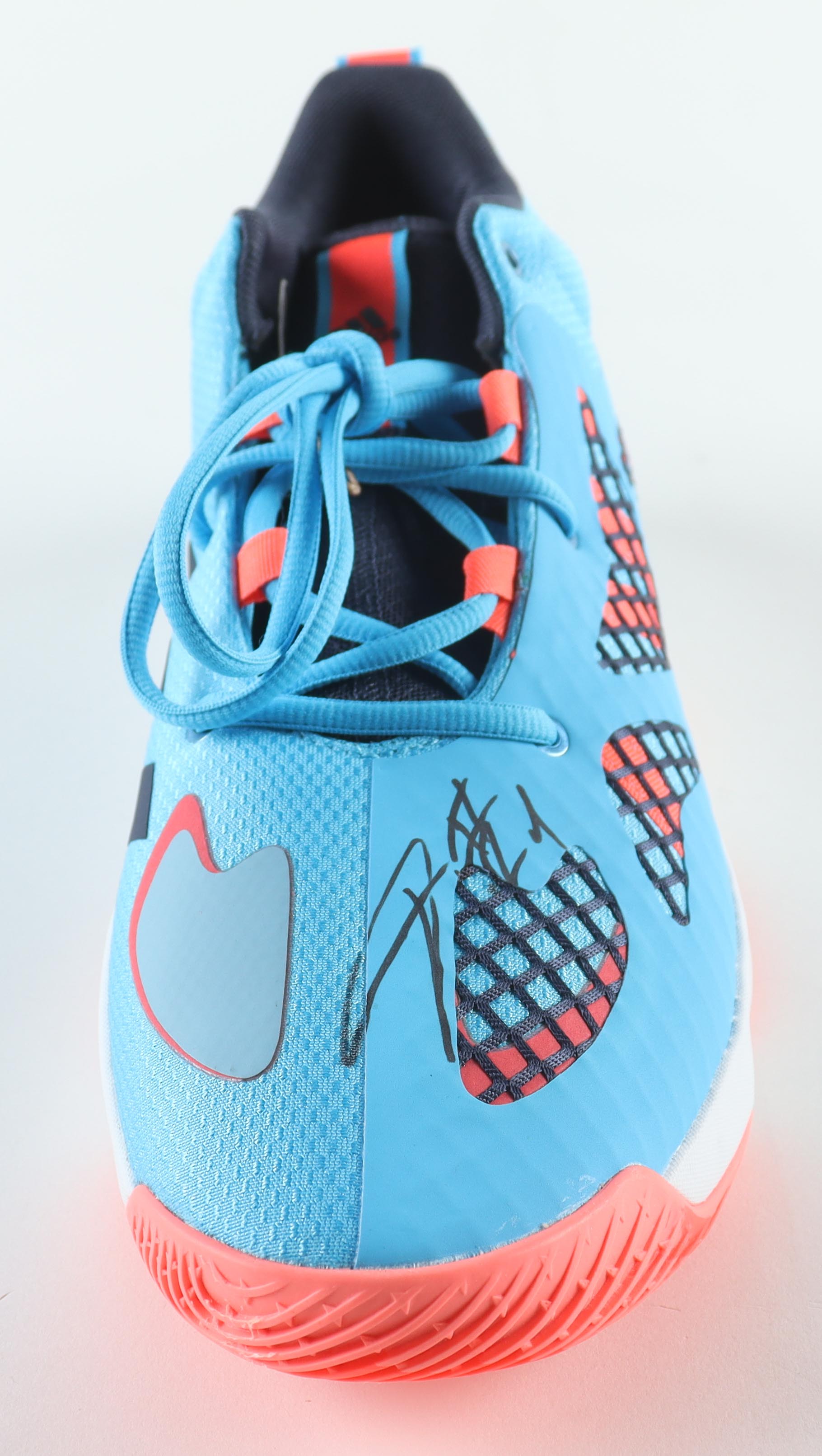 Adidas Bouce basketball shoe, left shoe, size 12. Hand-signed by Jordan Hawkins (New Orleans Pelicans).