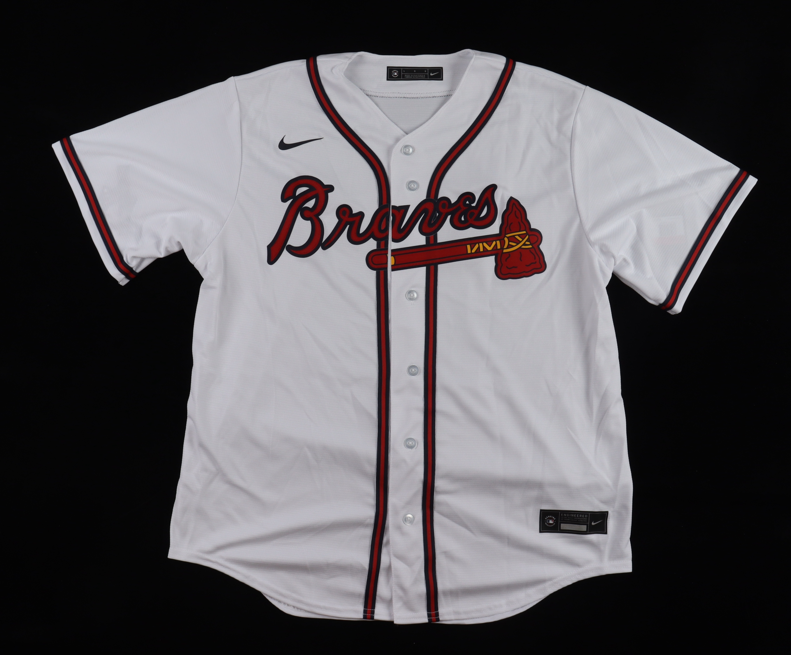 Nike jersey everything is printed on, size L. Hand-signed and inscribed by Ronald Acuna Jr. (Atlanta Braves).